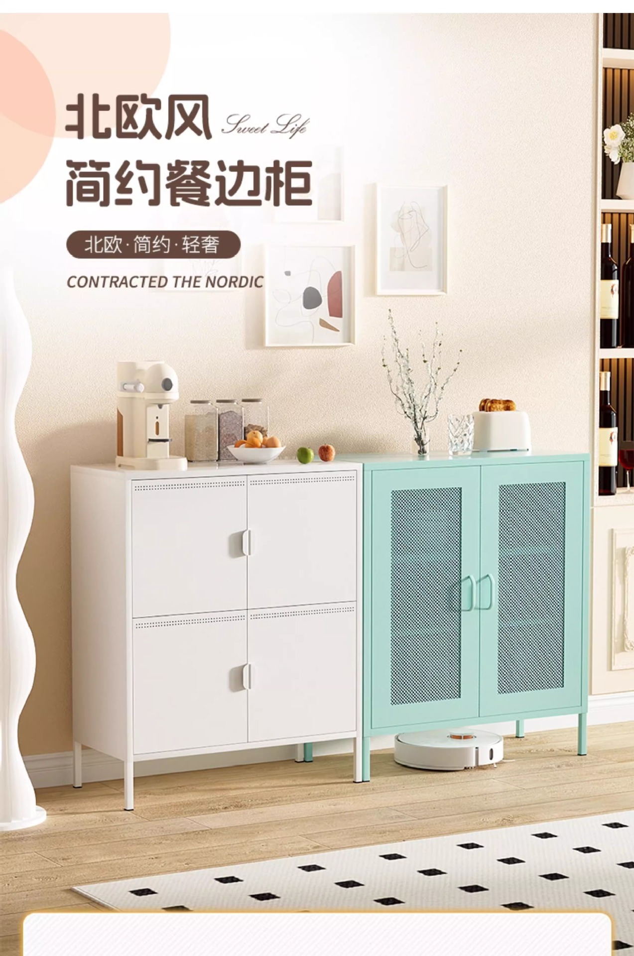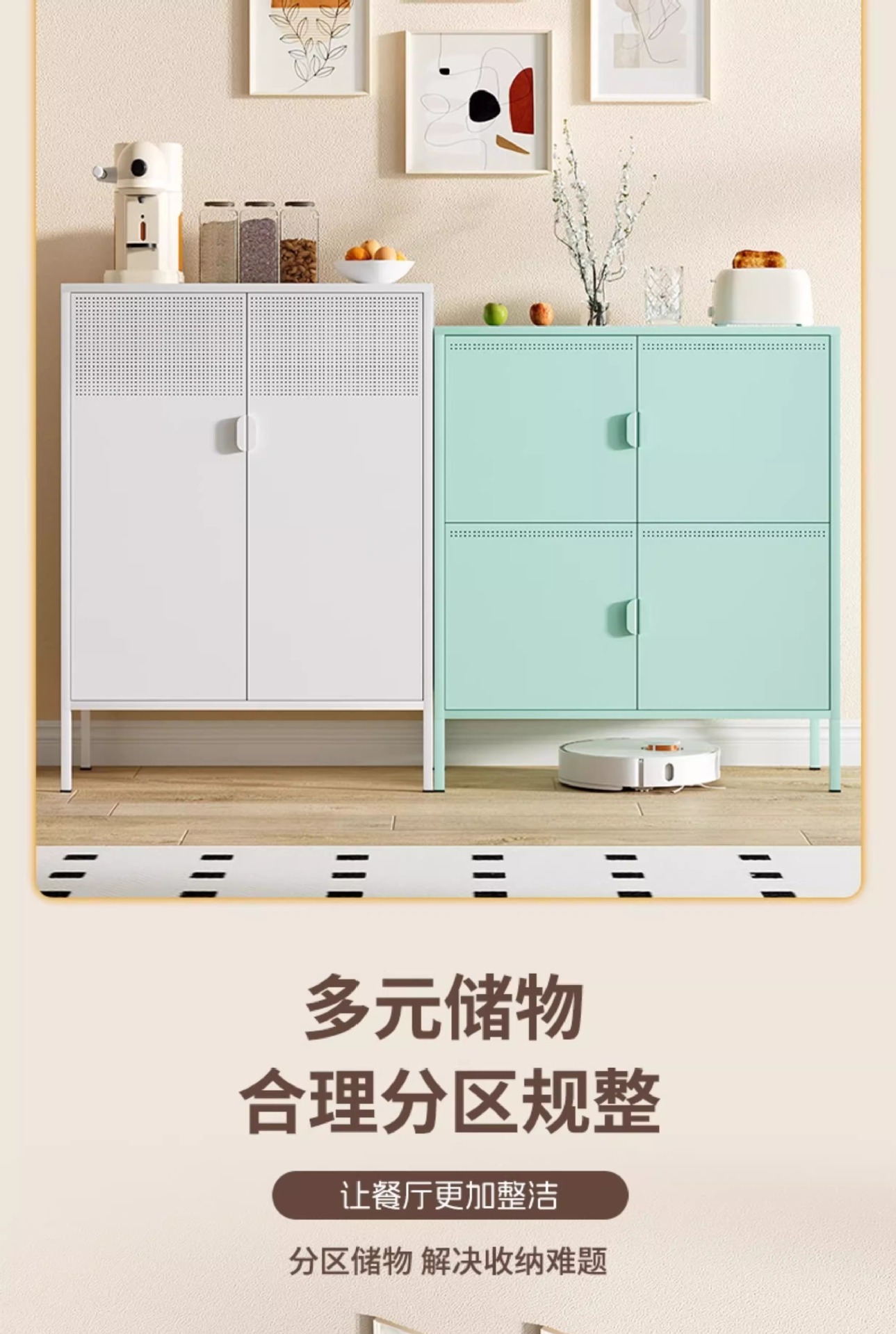 케피아 철제 식탁 옆장 거실 옆장 수납장 가정용 주방 조합형 바닥형 수납장 미니멀리스트 스타일스토어 가기