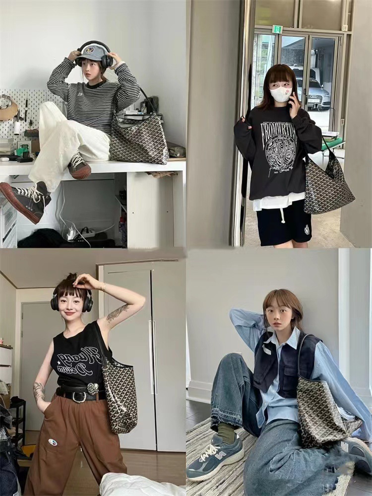 고야드/고야 업그레이드된 리치 그레인 소가죽 여성용 가방 호보 코튼 린넨 토트백 마더 쇼핑백 숄더백스토어 가기