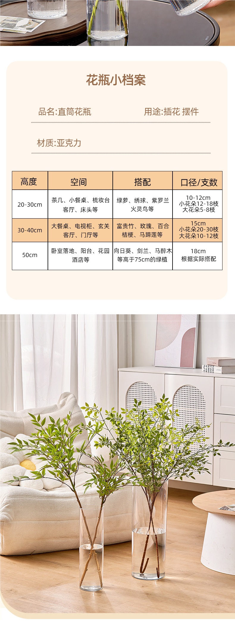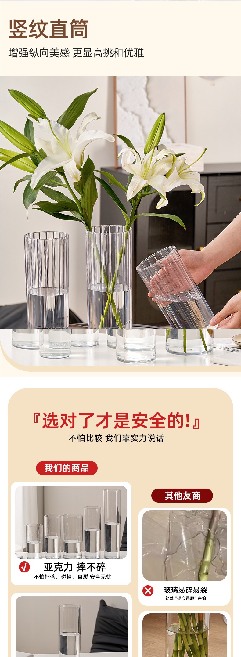 아크릴 꽃병 꽃꽂이 장식품 거실 감각 수경 재배 부자 대나무 투명 낙하 방지 플라스틱 대형 꽃 화분스토어 가기