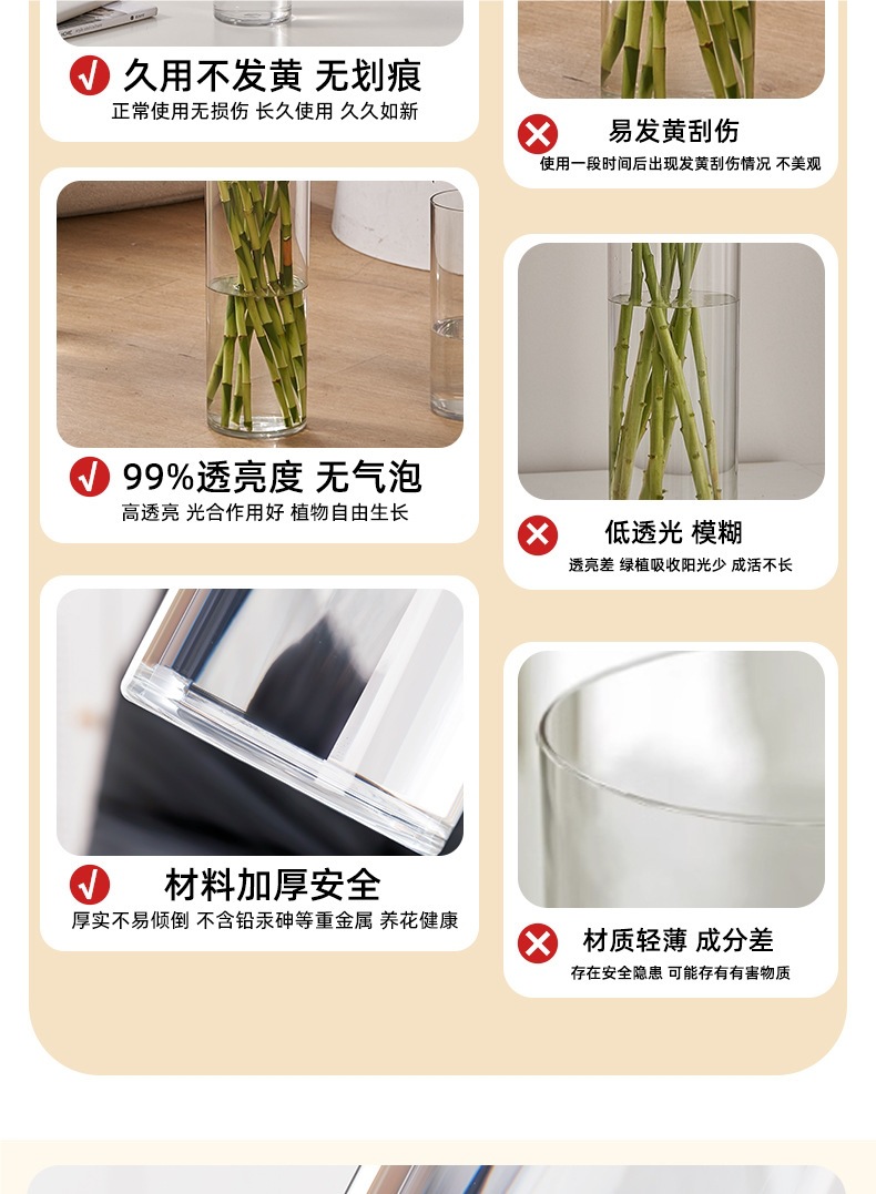 아크릴 꽃병 꽃꽂이 장식품 거실 감각 수경 재배 부자 대나무 투명 낙하 방지 플라스틱 대형 꽃 화분
