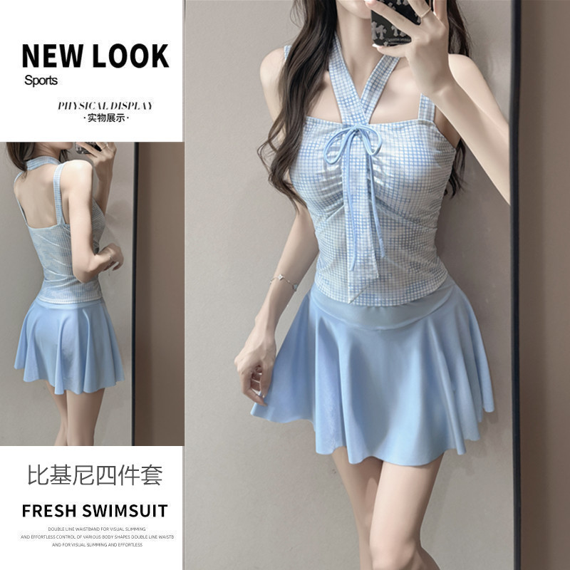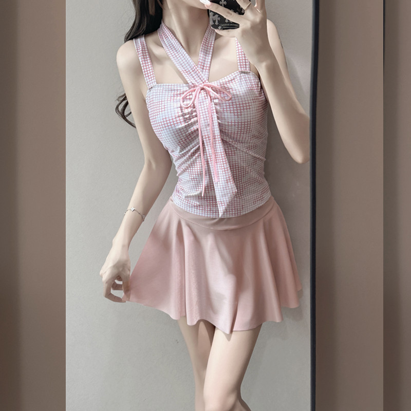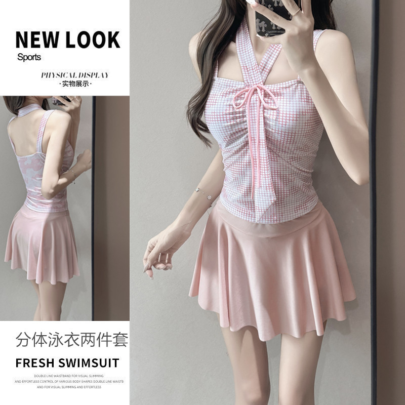 여성용 신상 스플릿 수영복, 신선한 투피스 서스펜더 온천 여학생 슬리밍 배 커버 온천 수영복스토어 가기