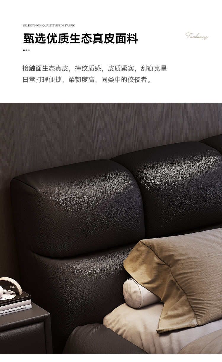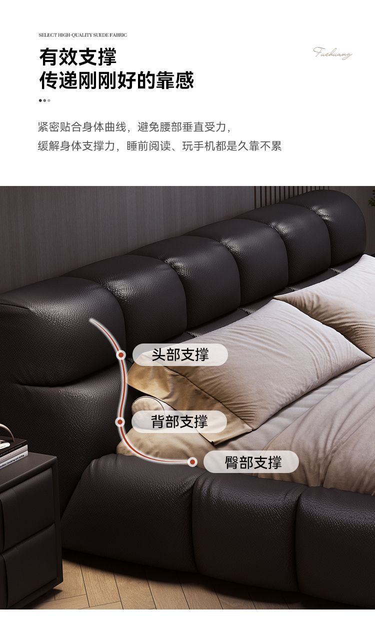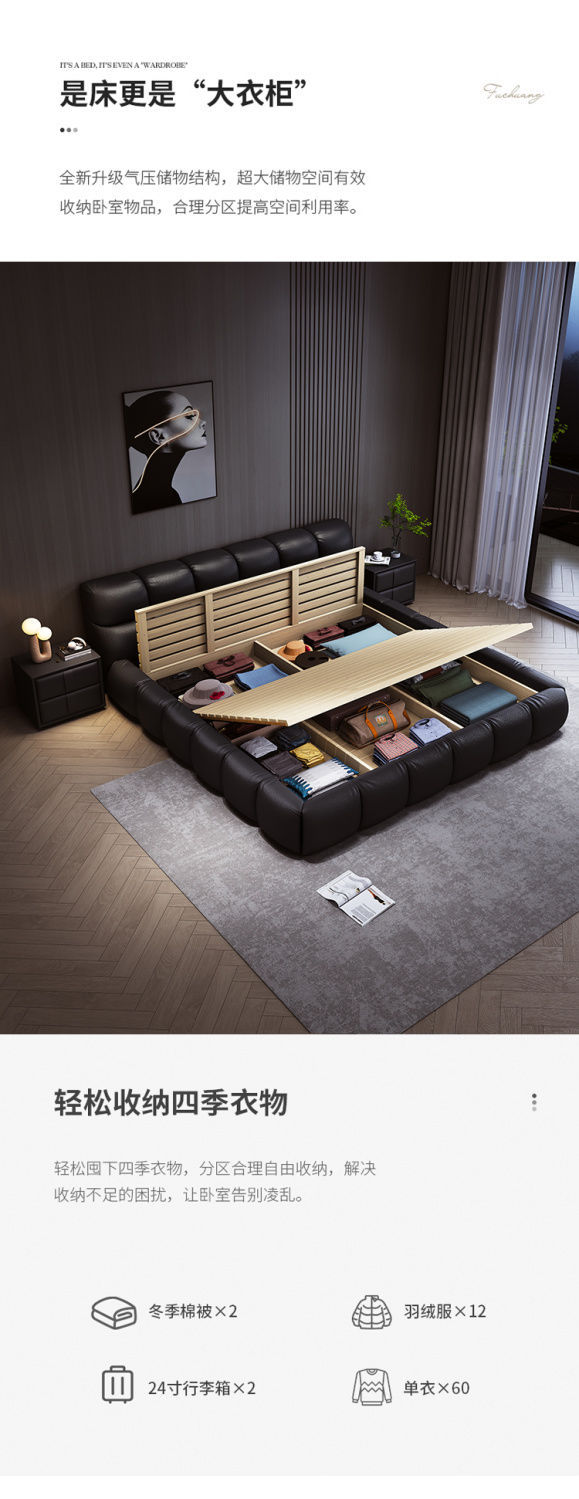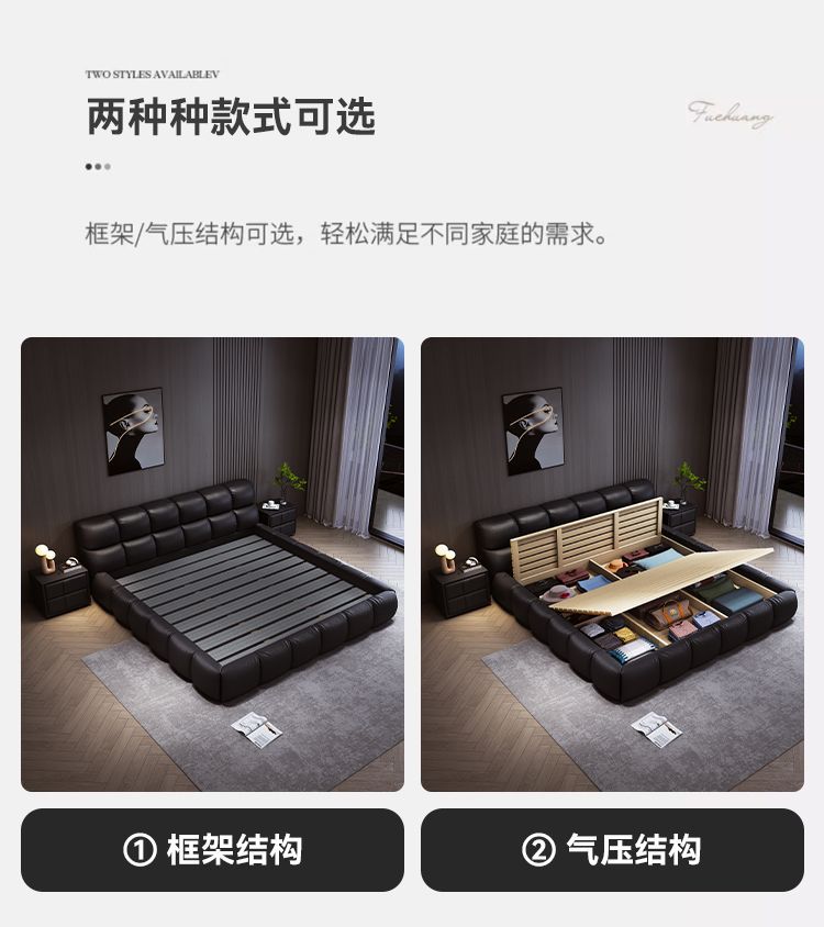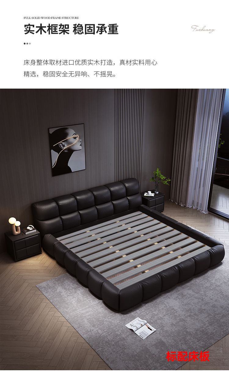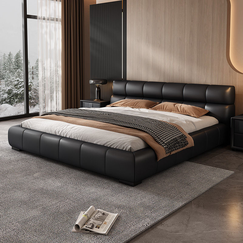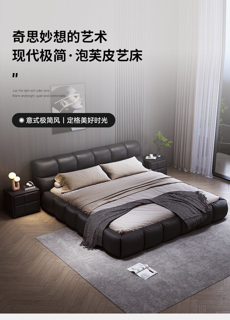 정품 가죽 현대적인 미니멀리스트 이탈리아 하이 엔드 블랙 퍼프 가죽 더블 침대 마스터 침실 수납 웨딩 침대 소프트 백 침대스토어 가기