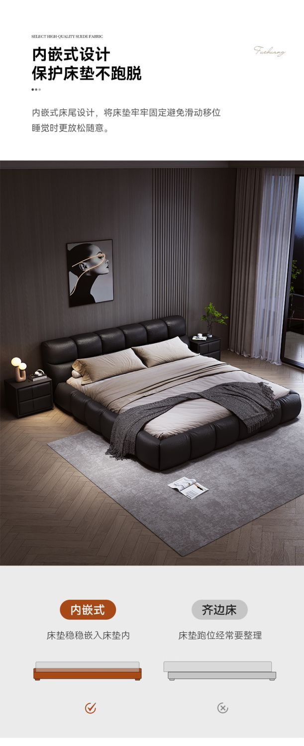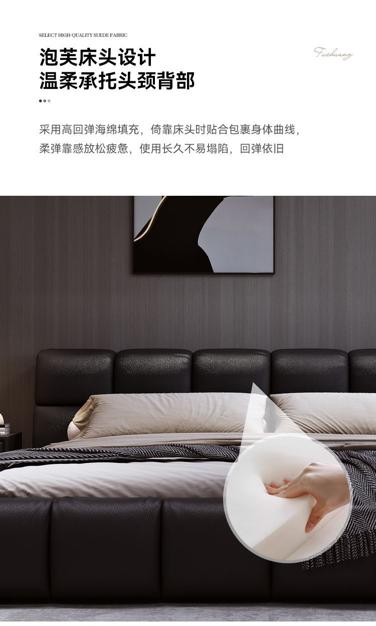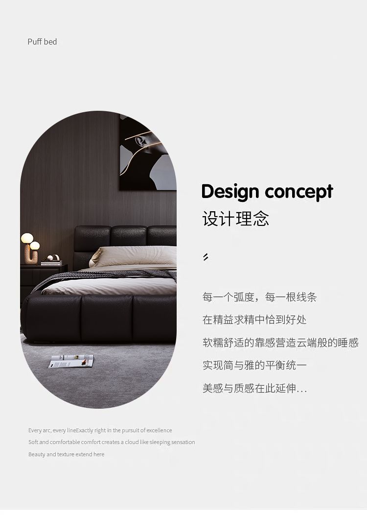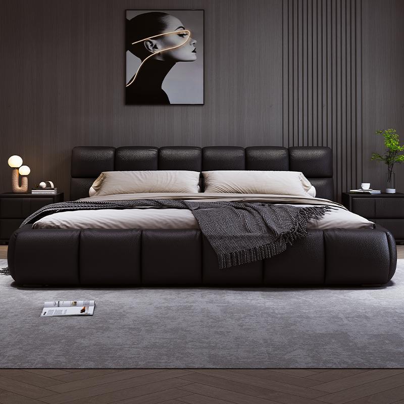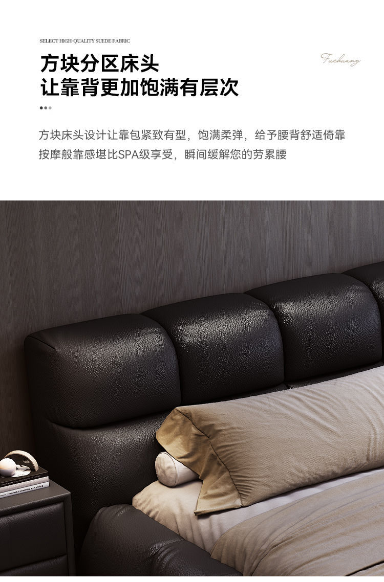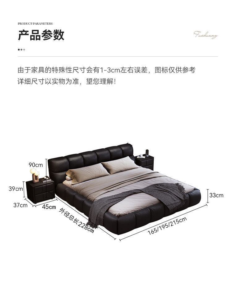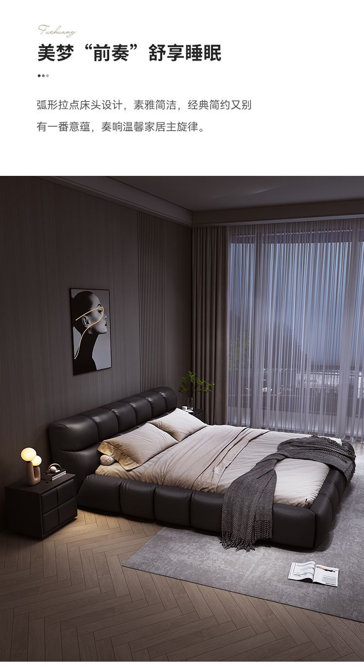 정품 가죽 현대적인 미니멀리스트 이탈리아 하이 엔드 블랙 퍼프 가죽 더블 침대 마스터 침실 수납 웨딩 침대 소프트 백 침대스토어 가기