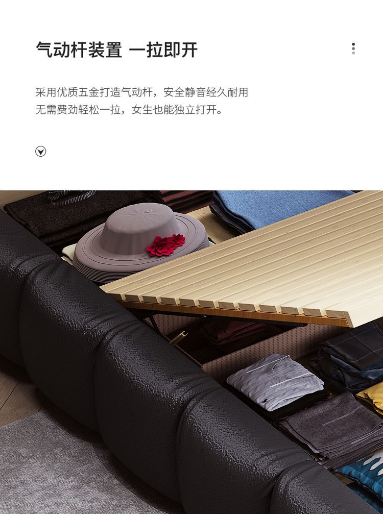 • 가죽 침대 + 20cm 스프링 매트리스 + 침대 옆 탁자 1개 + 공기압 구조