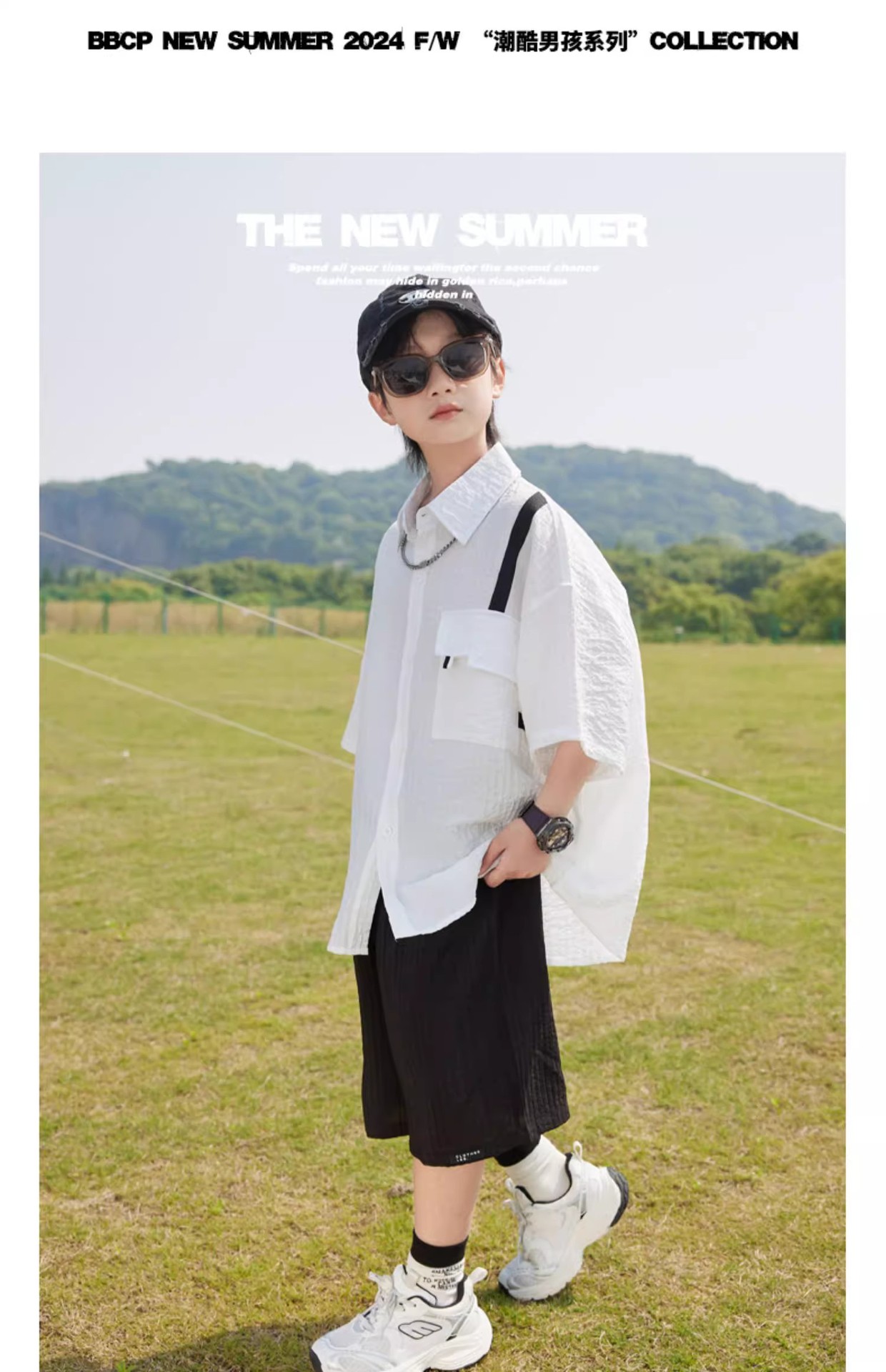 소년 여름 정장 2025 새로운 어린이 여름 얇은 반팔 셔츠 중대형 어린이 여름 스타일 유행 소년 트렌드