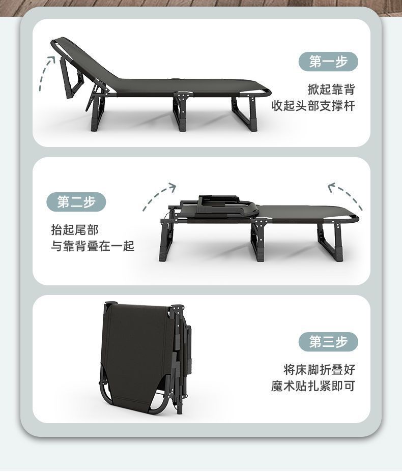 공장 직접 다기능 야외 캠핑 블랙 간단한 홈 오피스 점심 시간 의자 캠프 접이식 침대스토어 가기