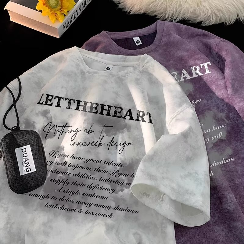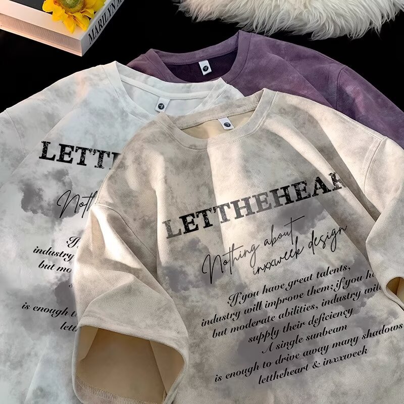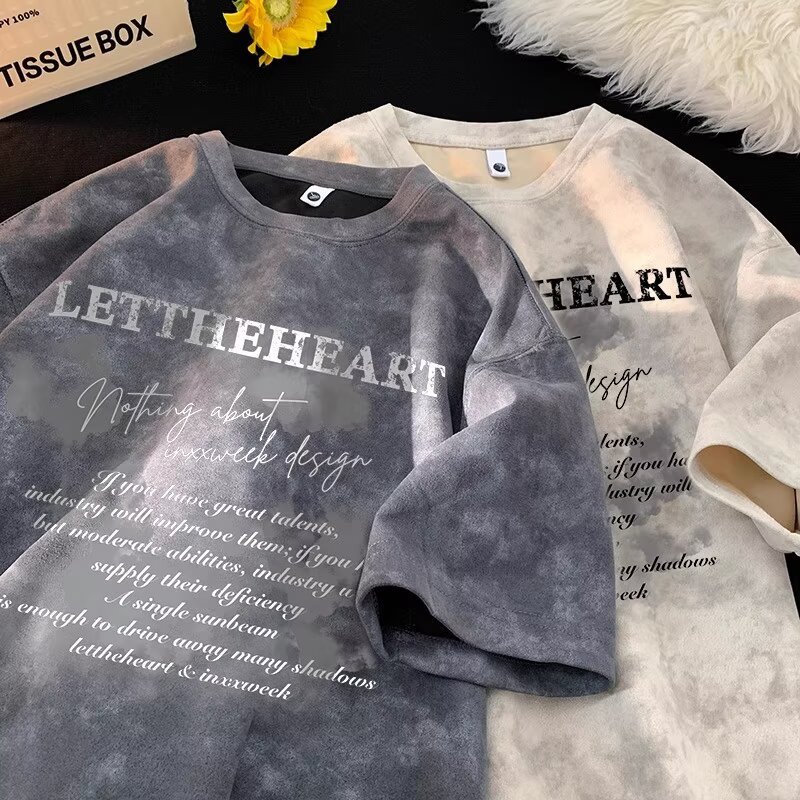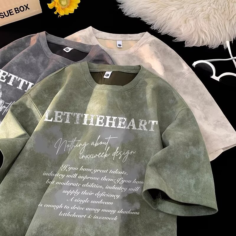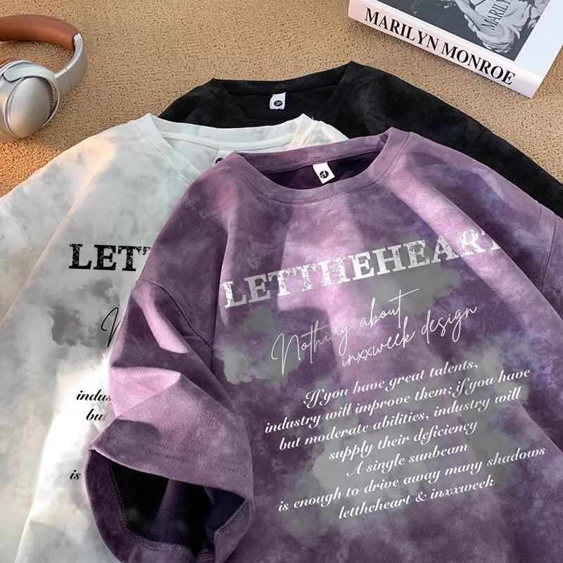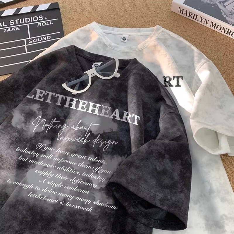 2025 트렌디한 반팔 티셔츠 남성 여름 아메리칸 타이 염색 디자인 반팔 탑 남성용 다용도 티셔츠스토어 가기