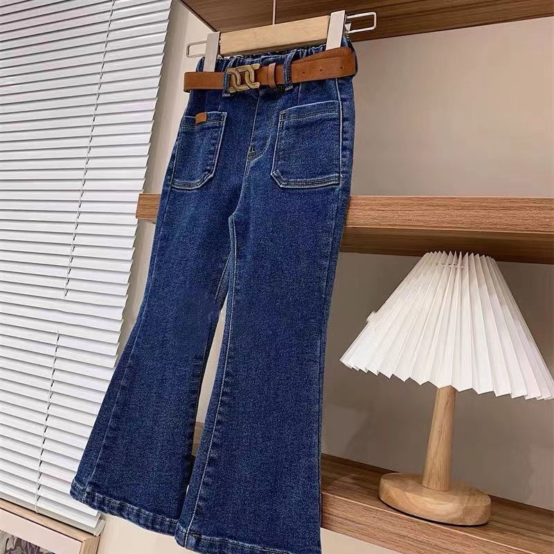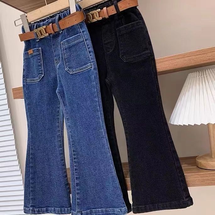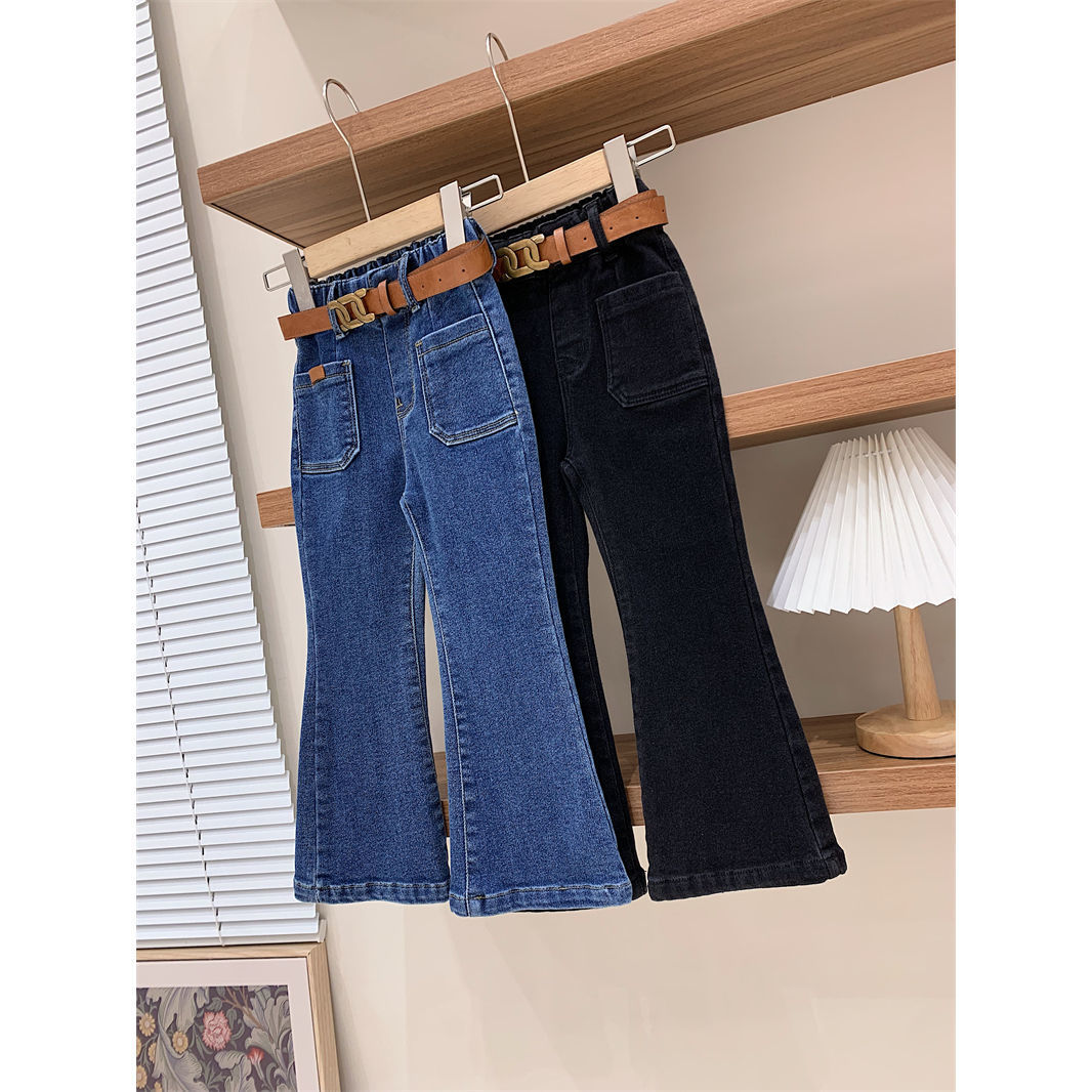 플레어 팬츠, 다재다능하고 스타일리시한 2025 한국 여아 청바지, 봄 가을 신상 아동 바지, 슬림핏, 중대형 아동스토어 가기