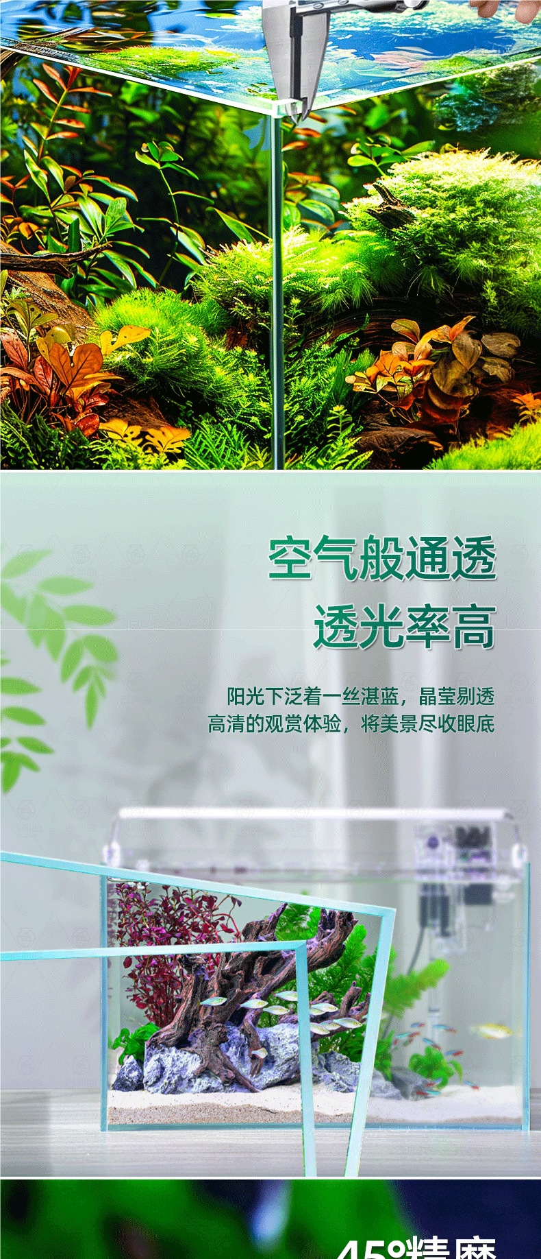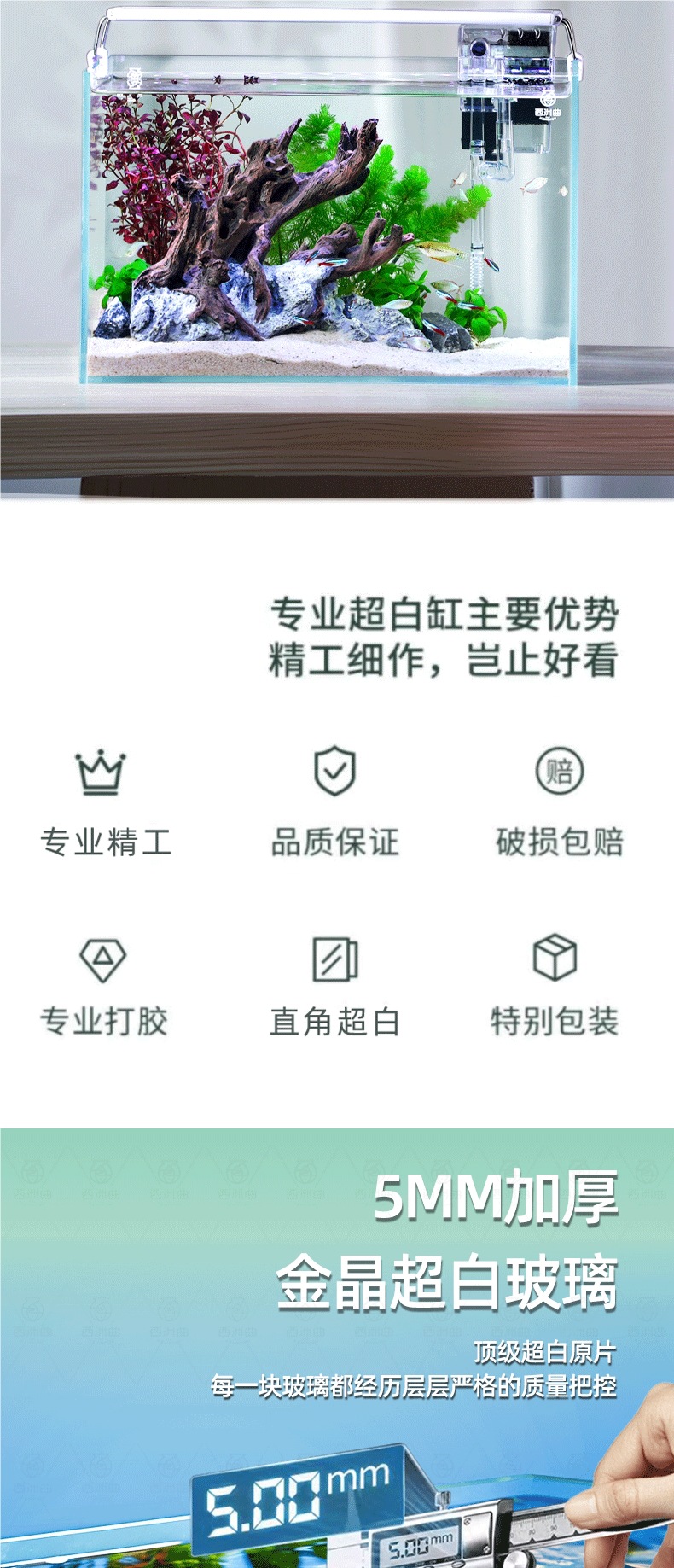 Jingjing 슈퍼 화이트 어항 데스크탑 거실 생태 물고기 물고기 거북이 탱크 조경 작은 수생 식물 물고기 유리 벌거벗은 탱크스토어 가기