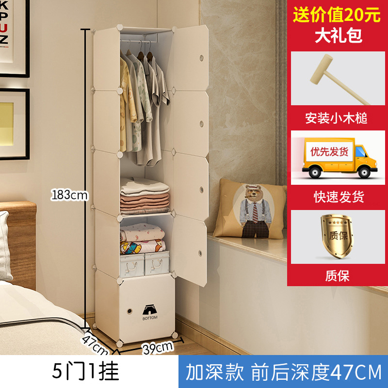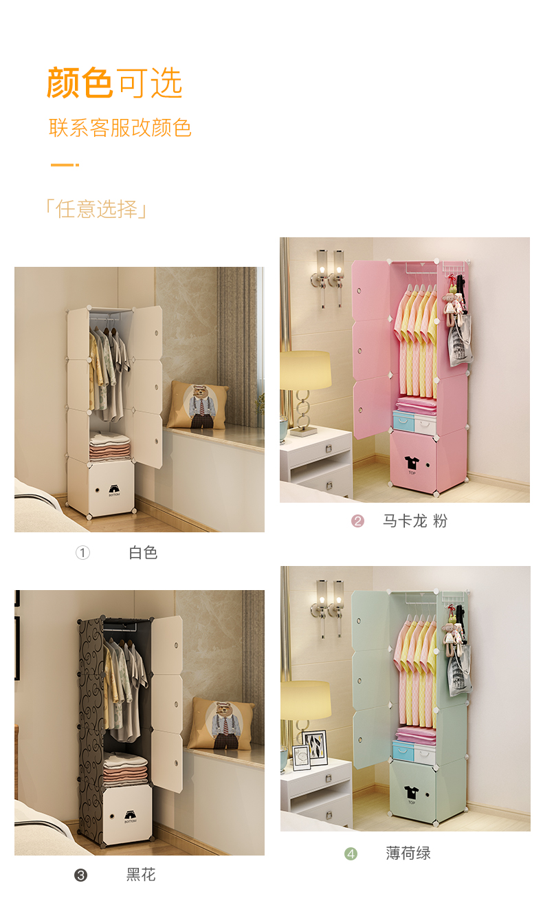 1인용 소형 옷장, 간단한 조립, 침실 기숙사 단일 도어 미니 소형 공간 절약형 소형 수납 수납 공기 소스