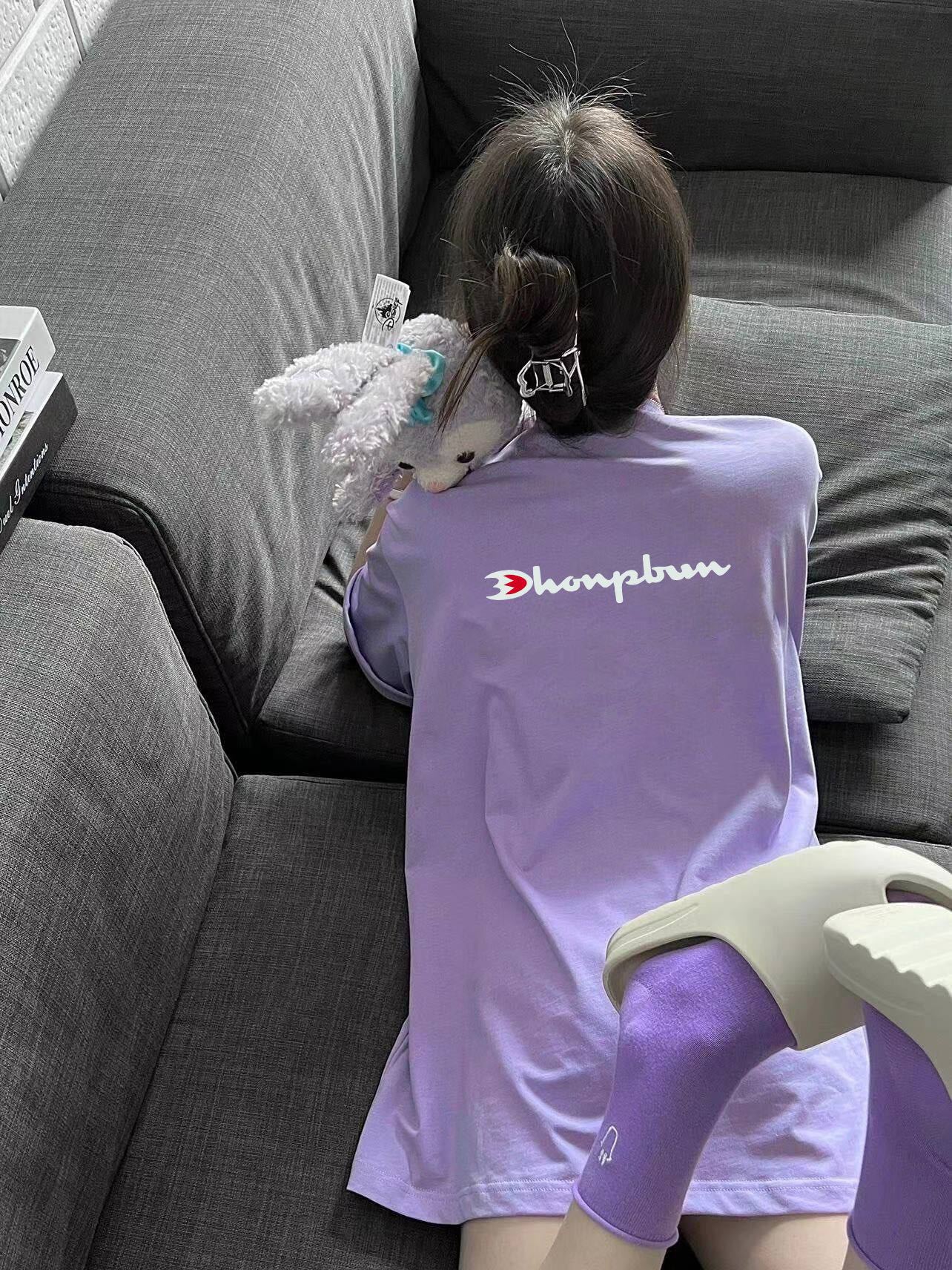 여성용 귀여운 챔피언 타로 퍼플 반팔 티셔츠, 여름 신상 순면 루즈 화이트 스타일 다용도 탑 드롭 배송스토어 가기