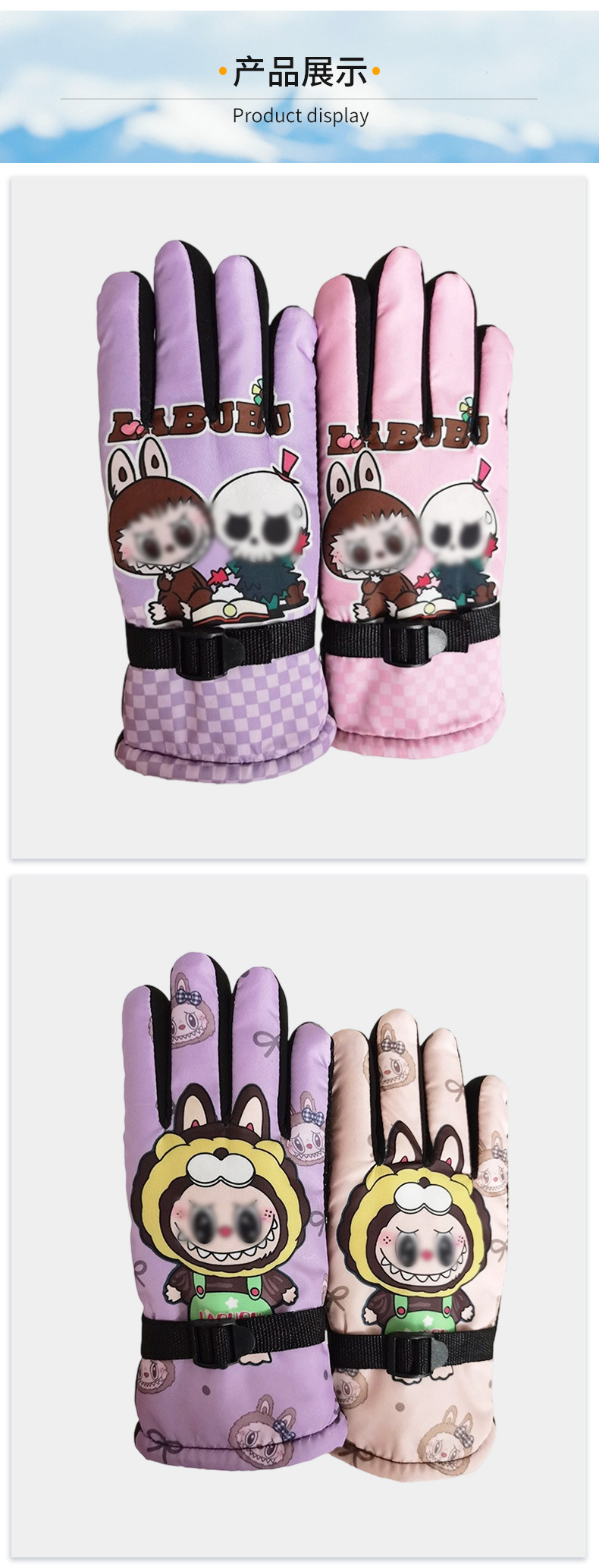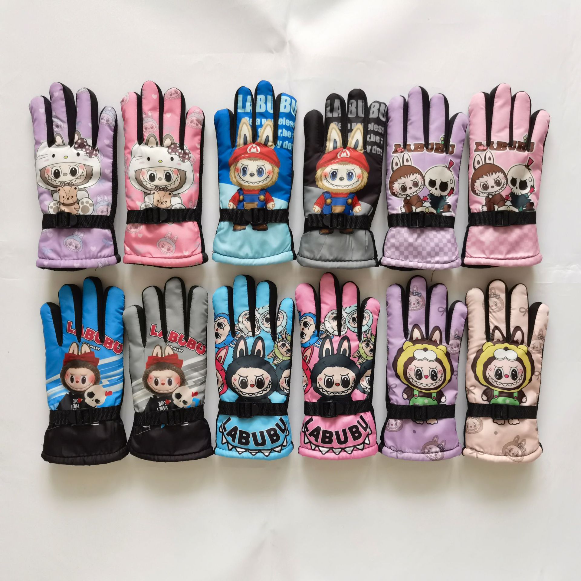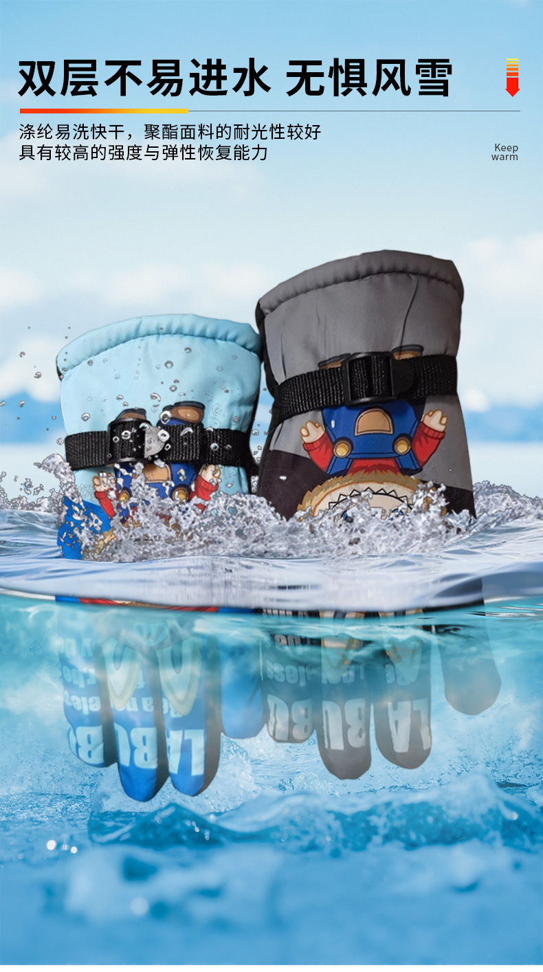 겨울 어린이 스키 장갑 야외 방풍 플러스 벨벳 두꺼운 따뜻한 만화 남성과 여성의 어린이 장갑 도매