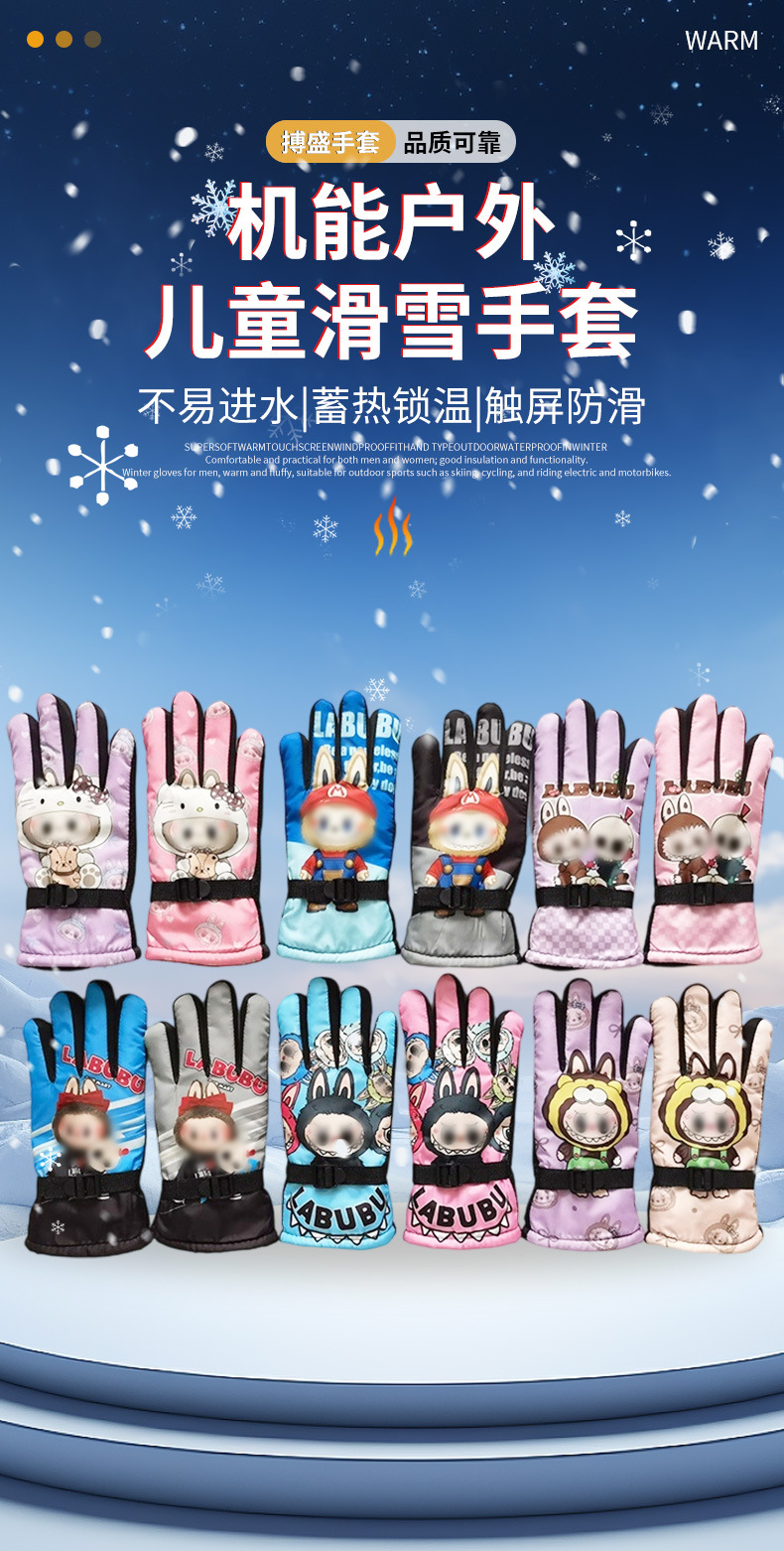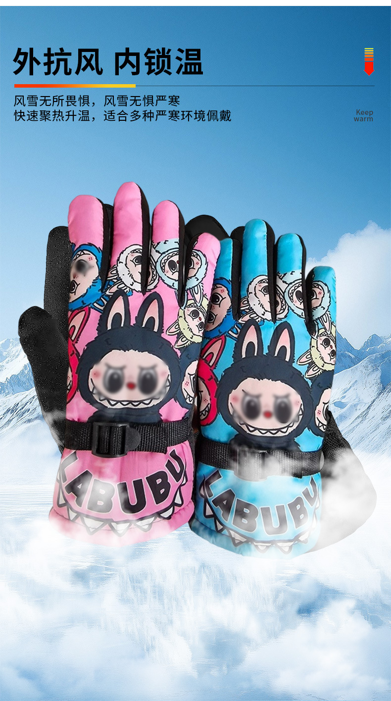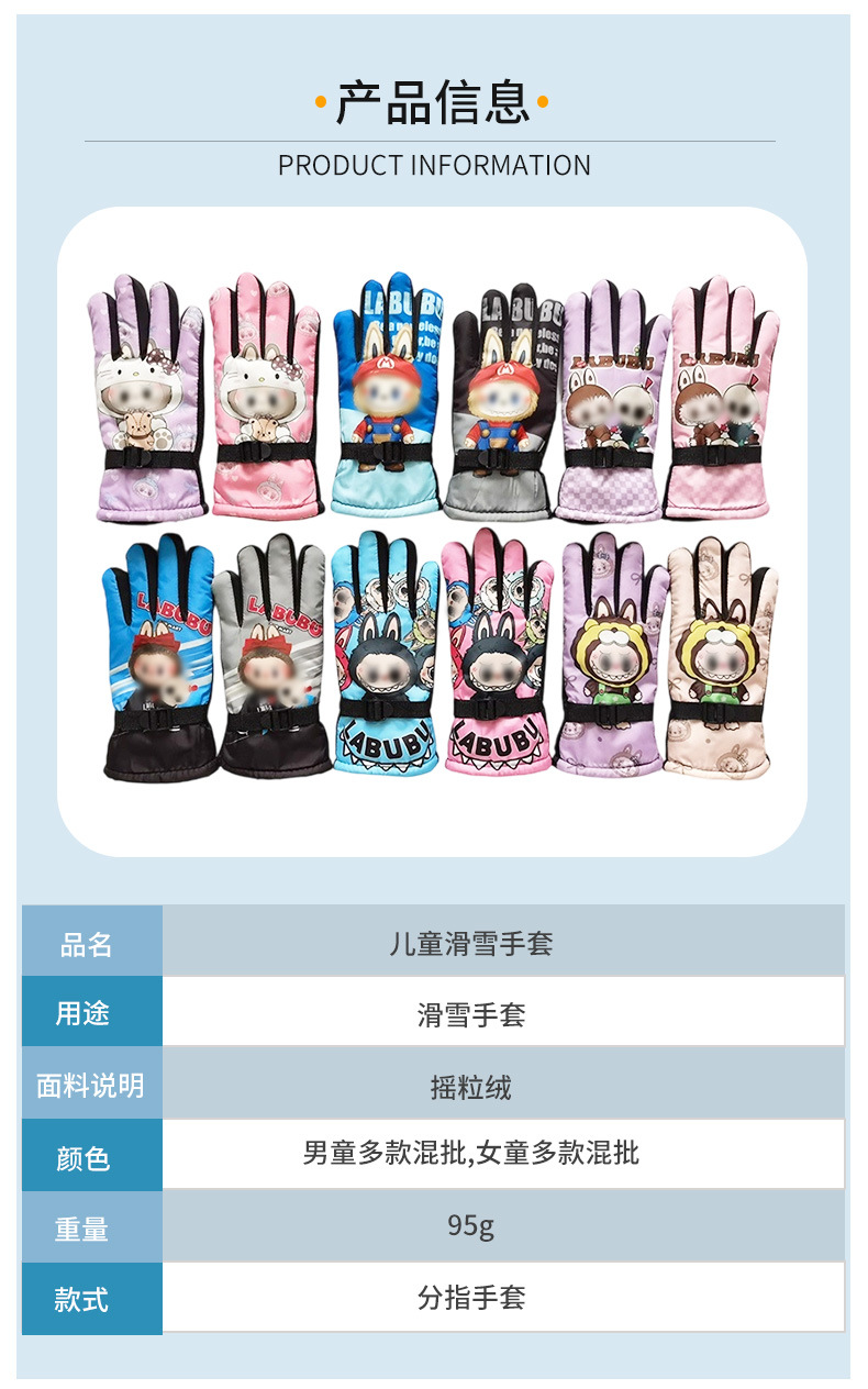 겨울 어린이 스키 장갑 야외 방풍 플러스 벨벳 두꺼운 따뜻한 만화 남성과 여성의 어린이 장갑 도매