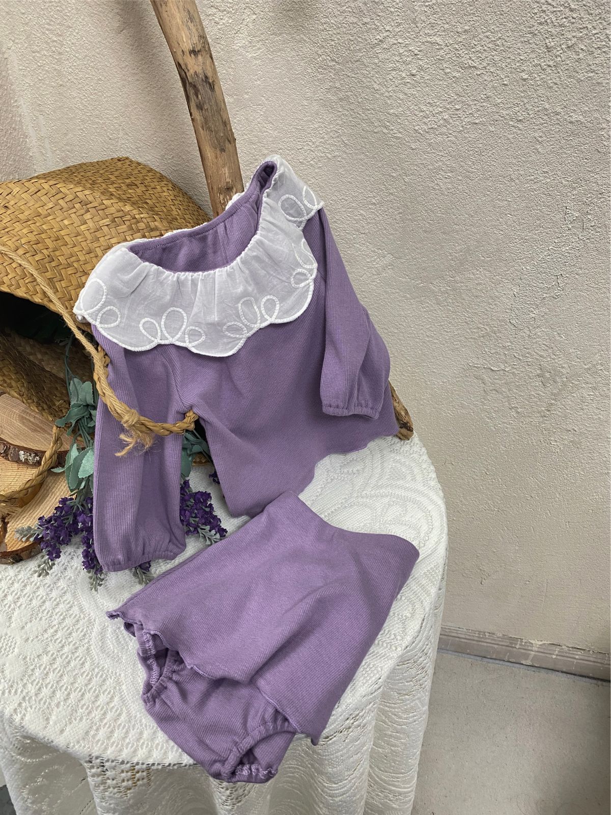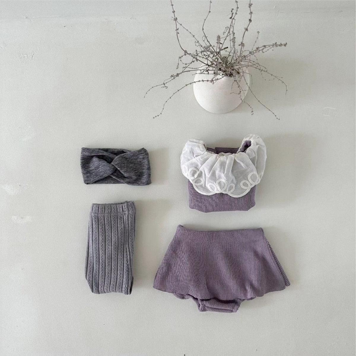 2025 가을 한국 아동복 여아 유아 레이스 칼라 스트라이프 긴팔 티셔츠 스커트 스타일 반바지 세트