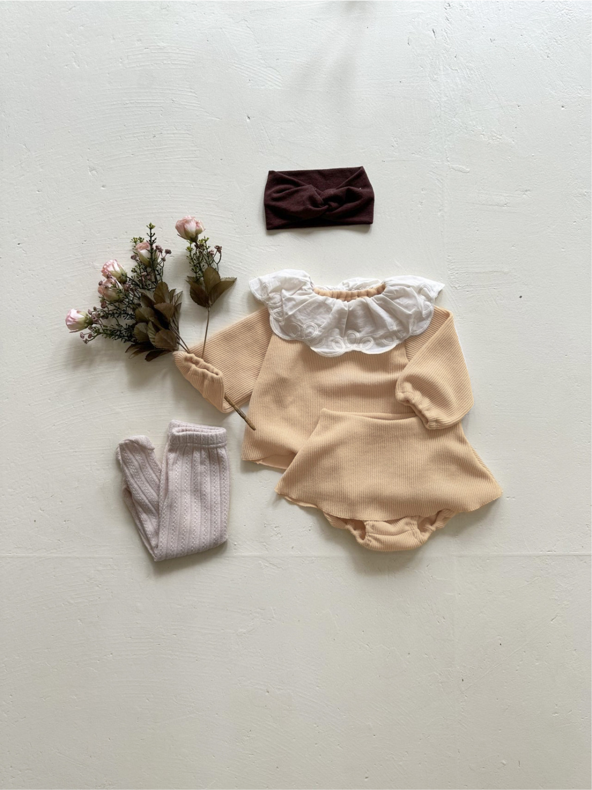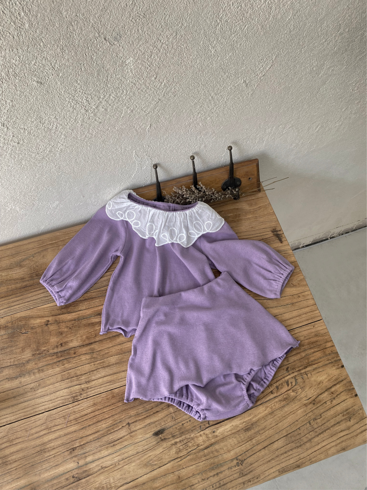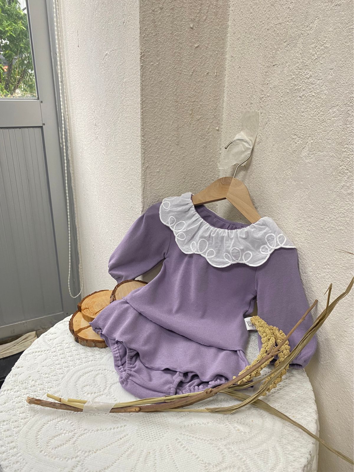 2025 가을 한국 아동복 여아 유아 레이스 칼라 스트라이프 긴팔 티셔츠 스커트 스타일 반바지 세트스토어 가기