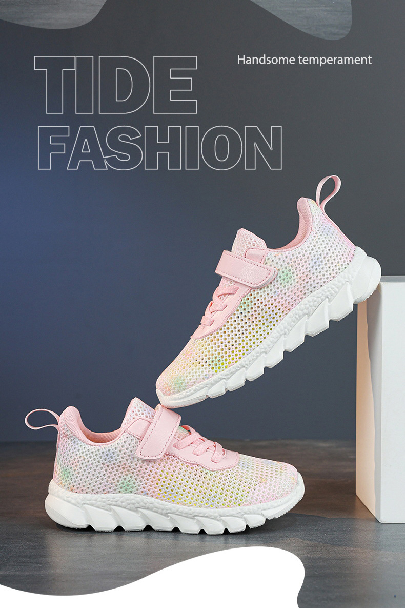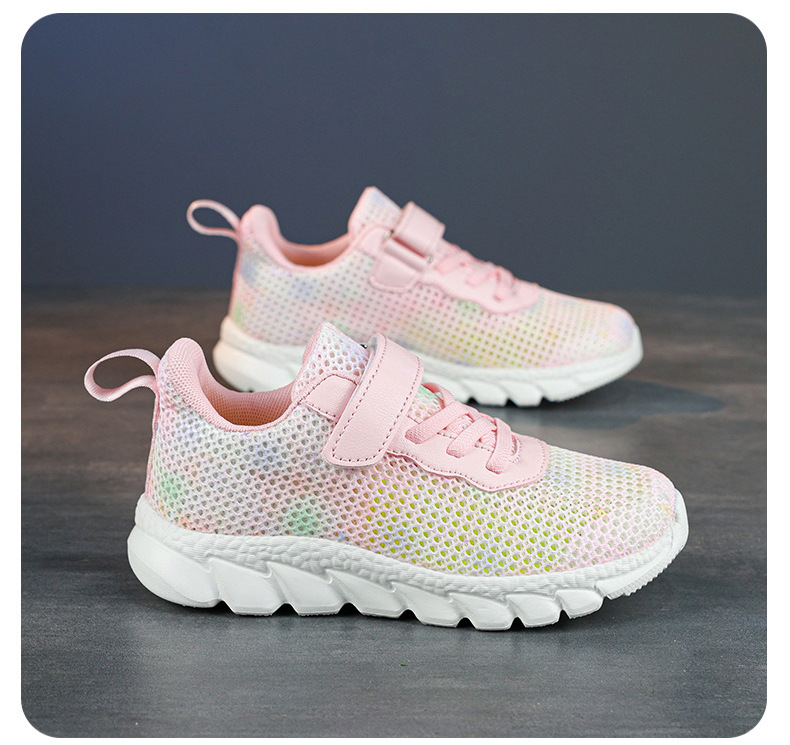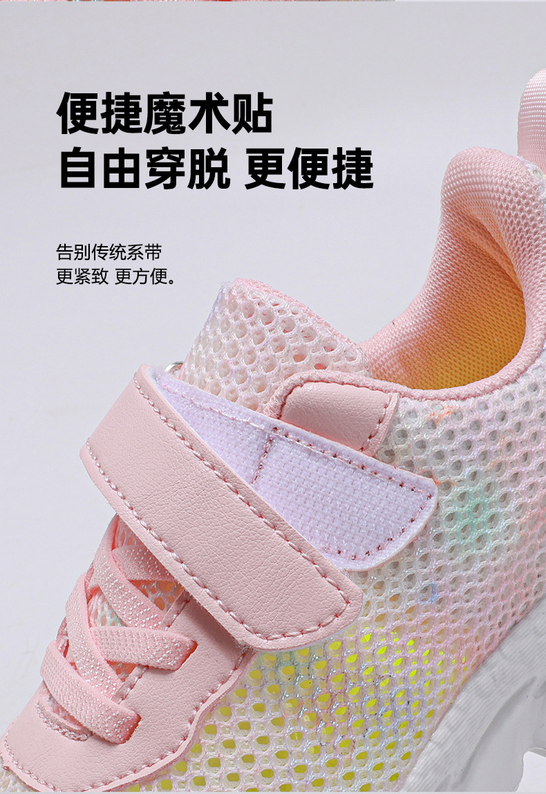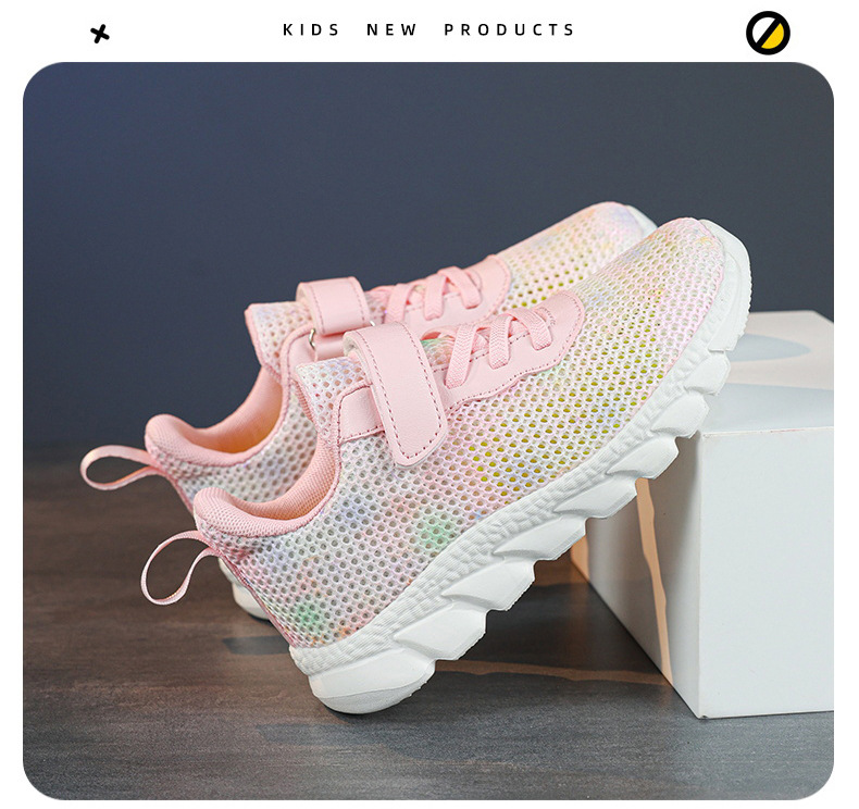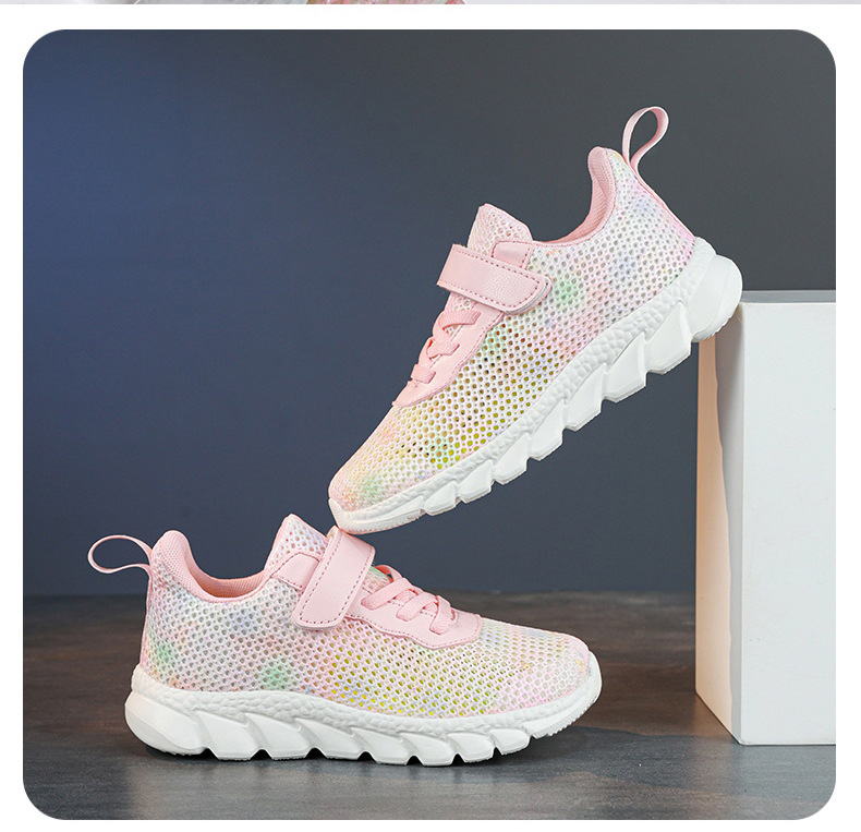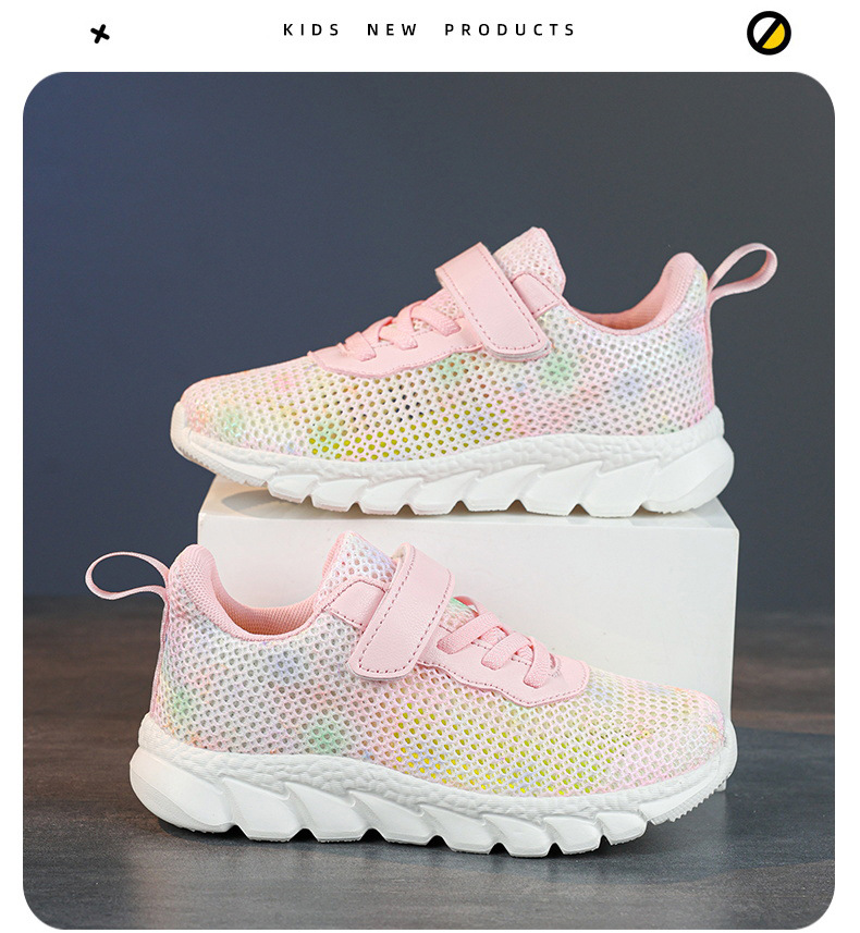 어린이 신발 2025 봄과 여름 새로운 어린이 캐주얼 플라이 짠 경량 벨크로 스포츠 신발 통기성 컬러 소프트 솔 메쉬 신발