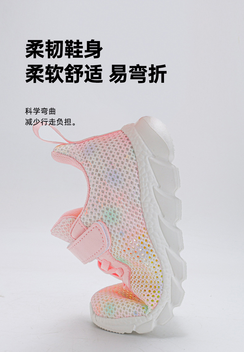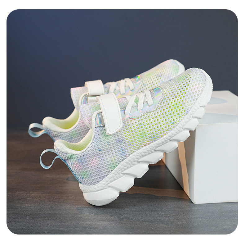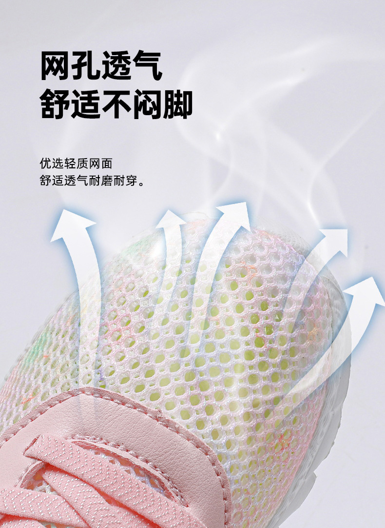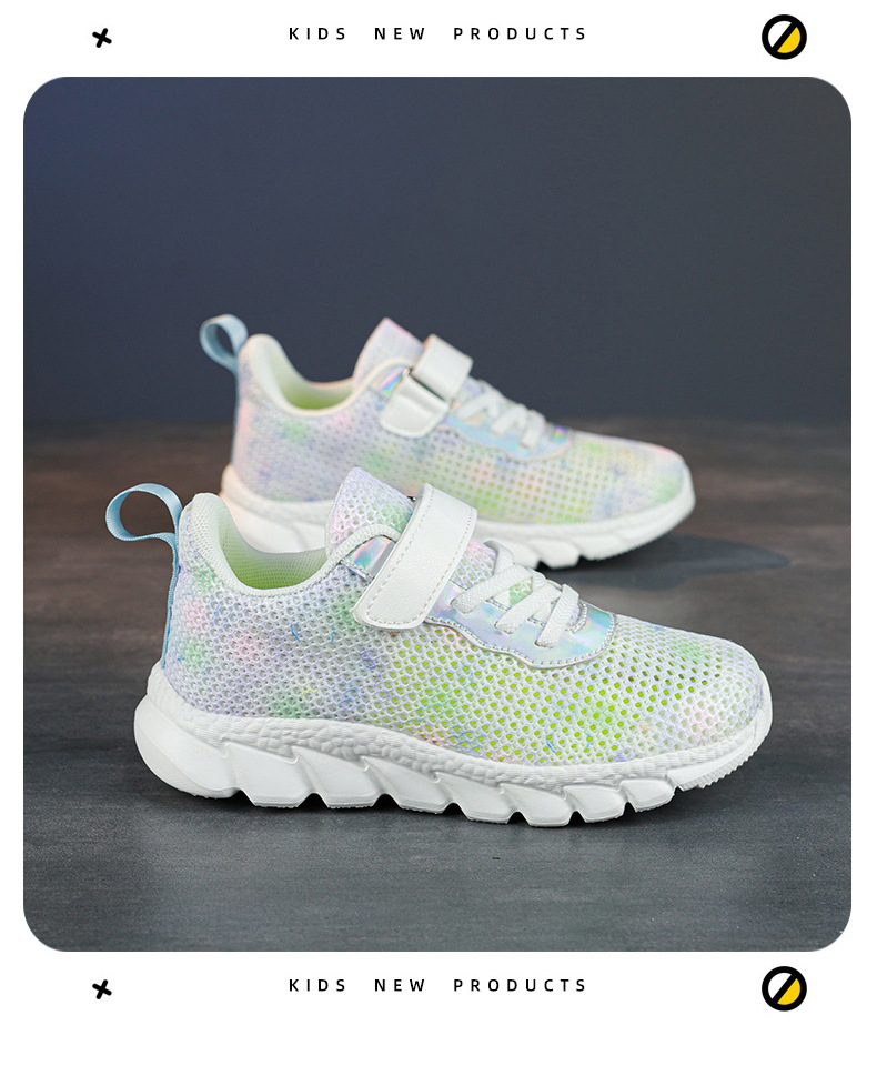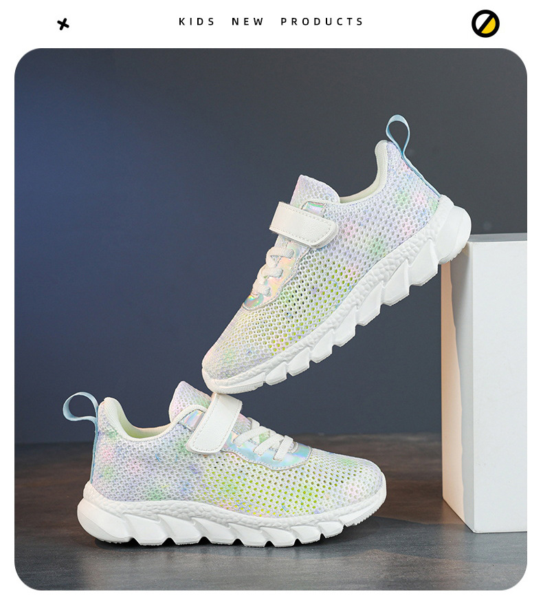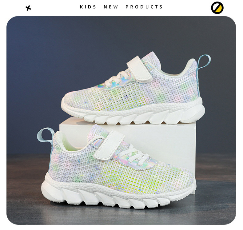 어린이 신발 2025 봄과 여름 새로운 어린이 캐주얼 플라이 짠 경량 벨크로 스포츠 신발 통기성 컬러 소프트 솔 메쉬 신발