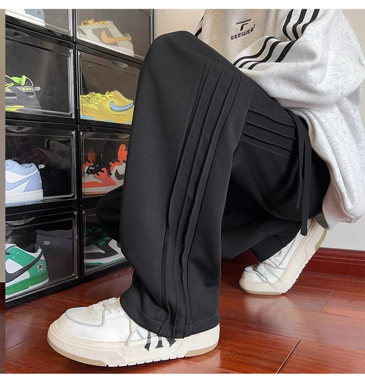 [라이트닝 창고 핫 스타일] 남성용 스웨트팬츠, 새로운 트렌디 브랜드 루즈 캐주얼 스포츠 팬츠, 스트레이트 레그 바닥 길이 바지스토어 가기