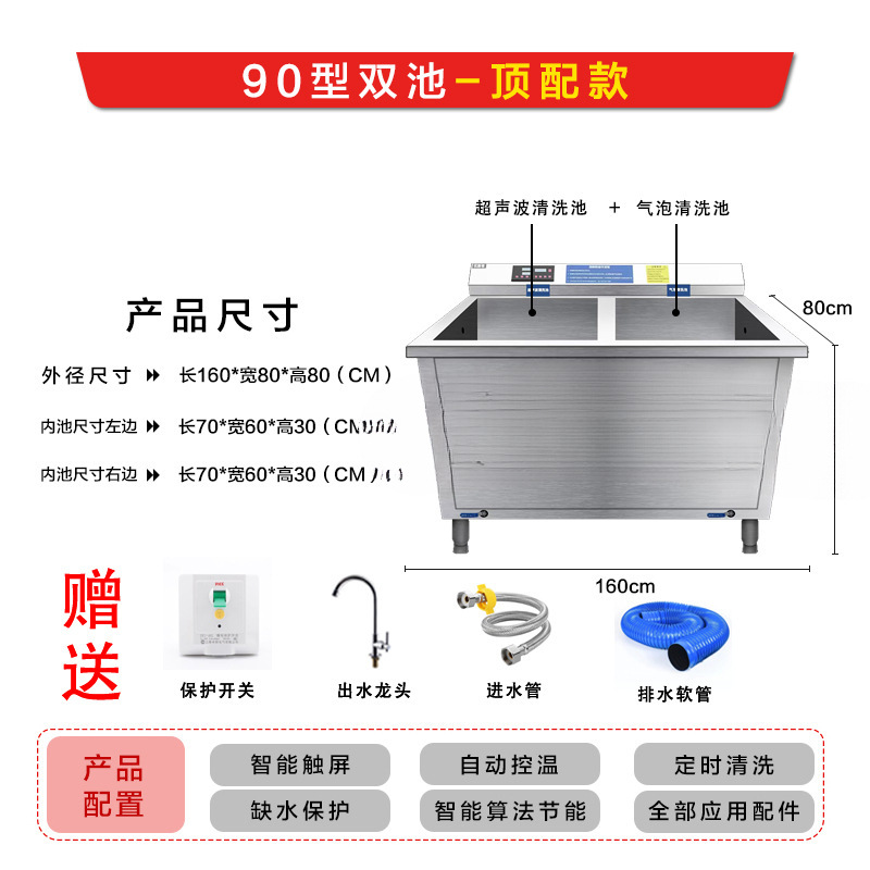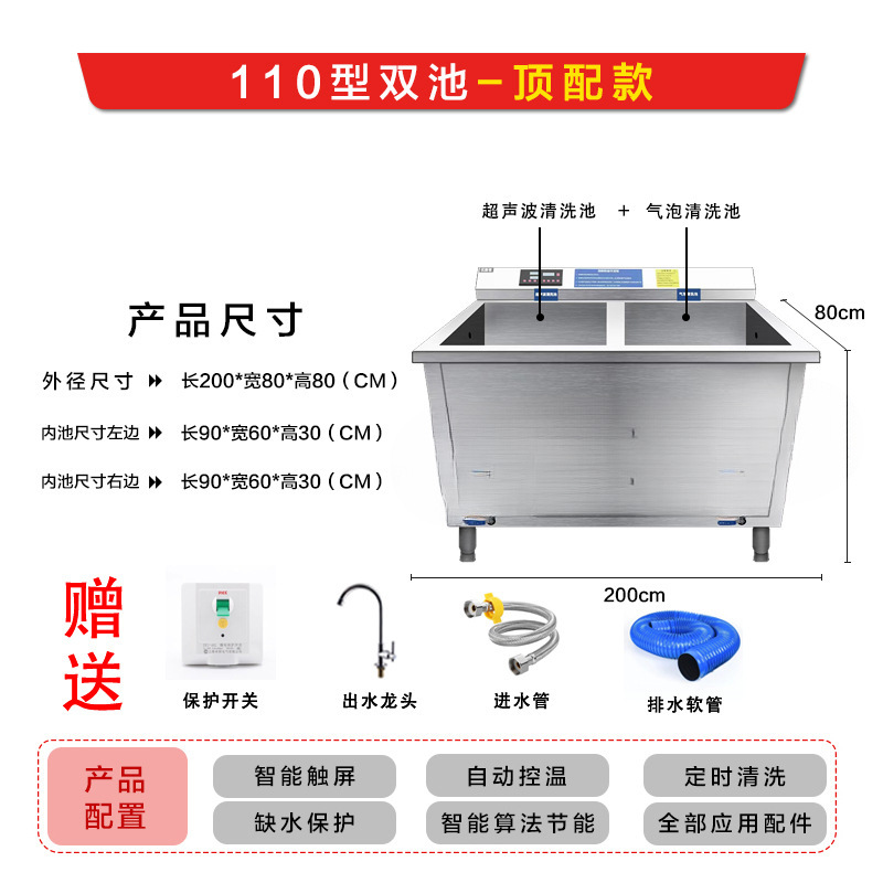 • 90형 더블 풀 탑 버전, 초음파 + 버블 청소. 식기세척기와 야채세척기 일체형 기계