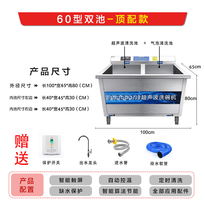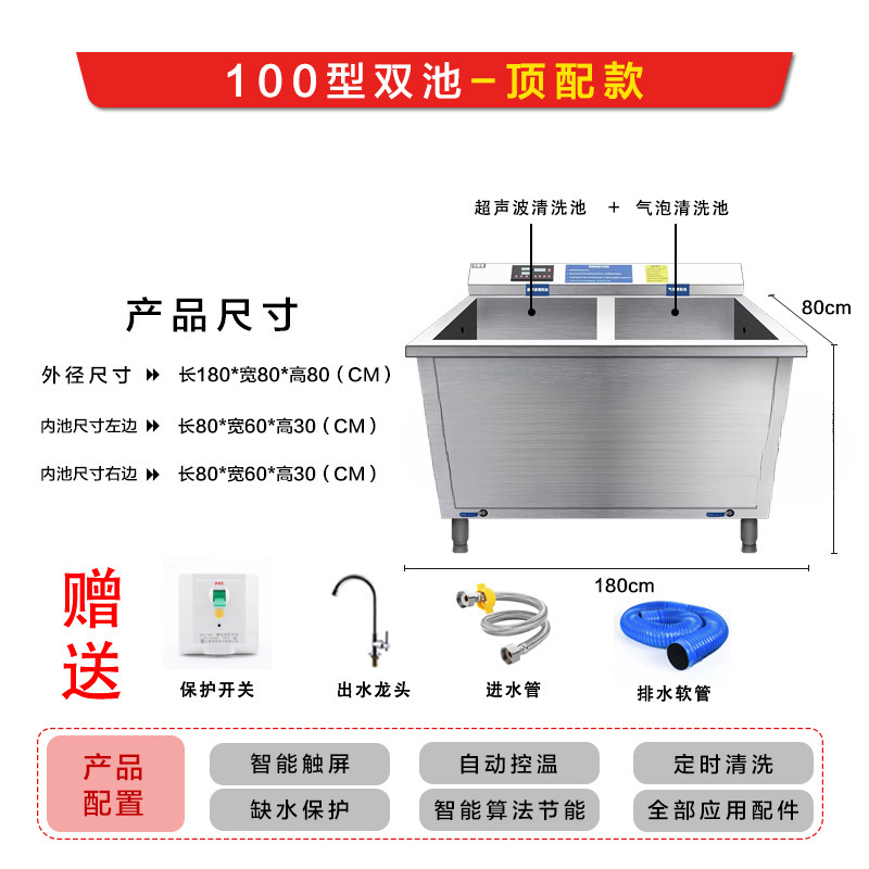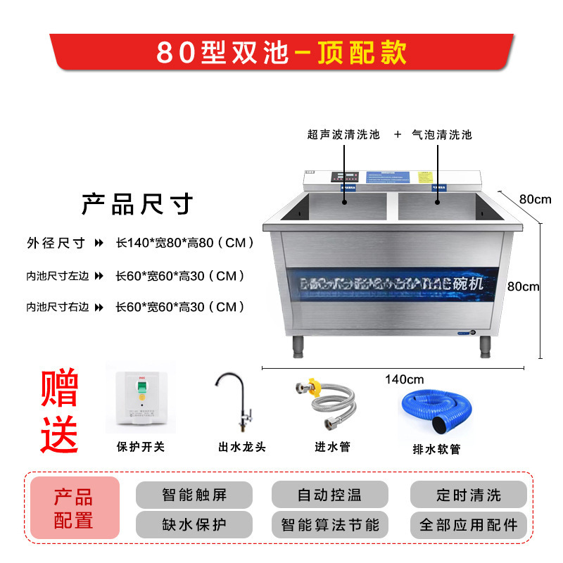 • 80형 더블 풀 탑 버전, 초음파 + 버블 청소. 식기세척기와 야채세척기 일체형 기계