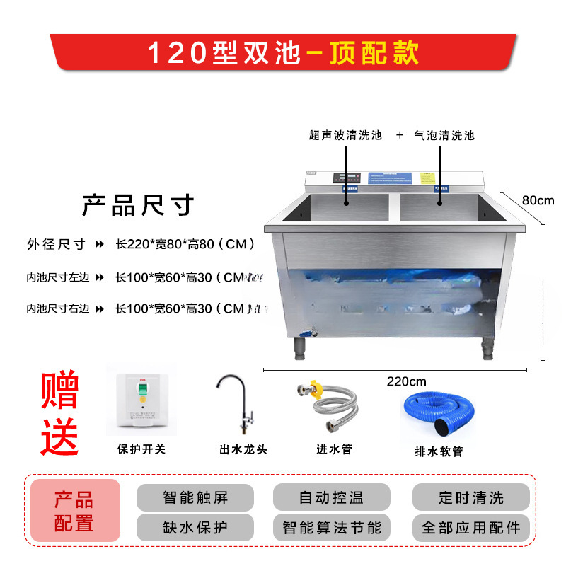 • 모델 120 더블 풀 탑 버전, 초음파 + 버블 청소. 식기세척기와 야채세척기 일체형 기계