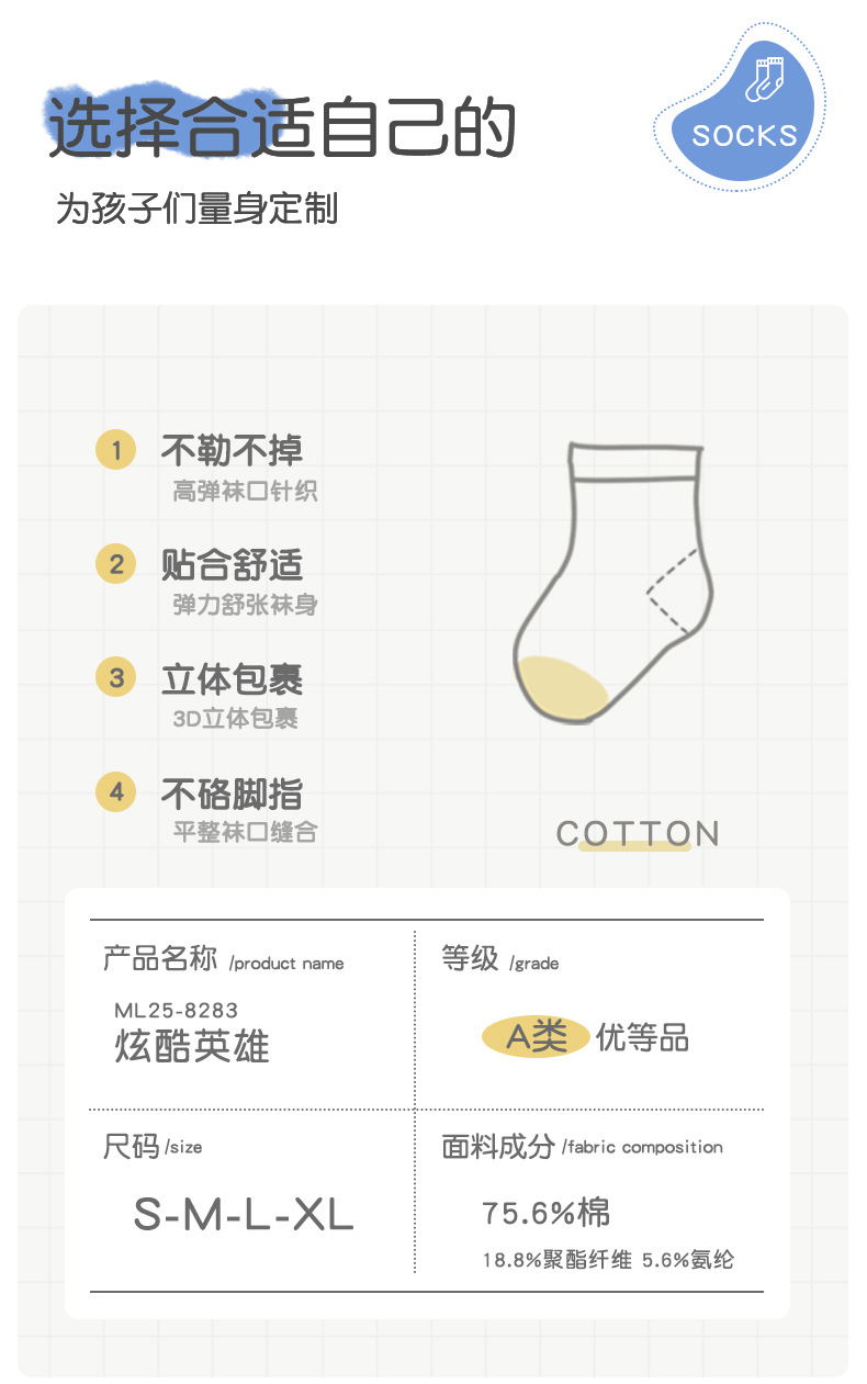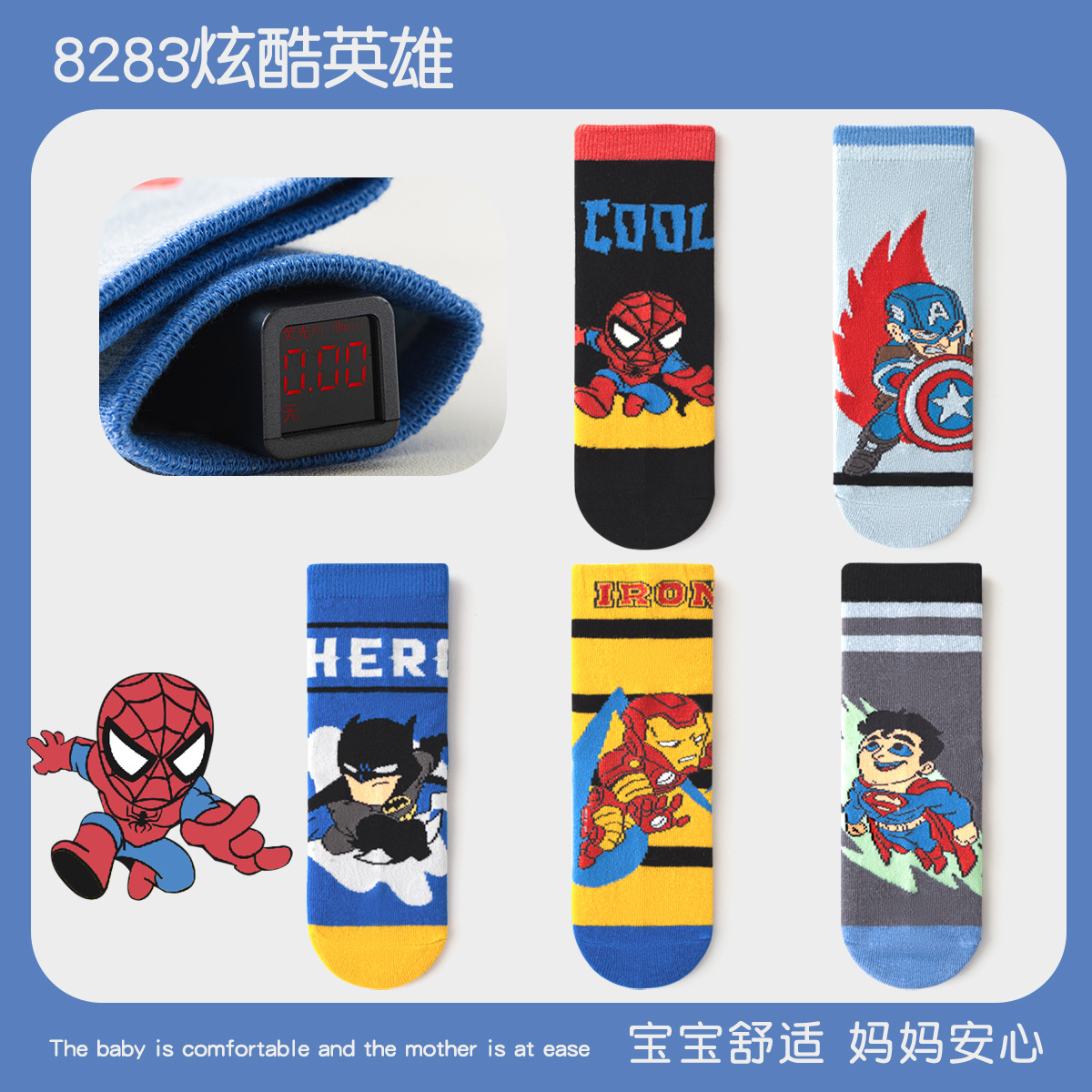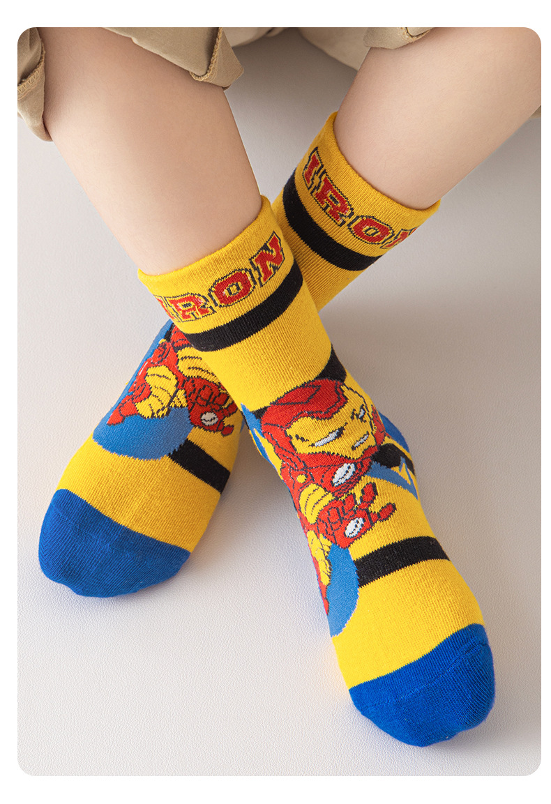 Minliu 어린이 양말 새로운 유형 A 소년 면 양말 가을, 겨울 소년 봄, 가을 중간 튜브 양말 만화 학생 양말