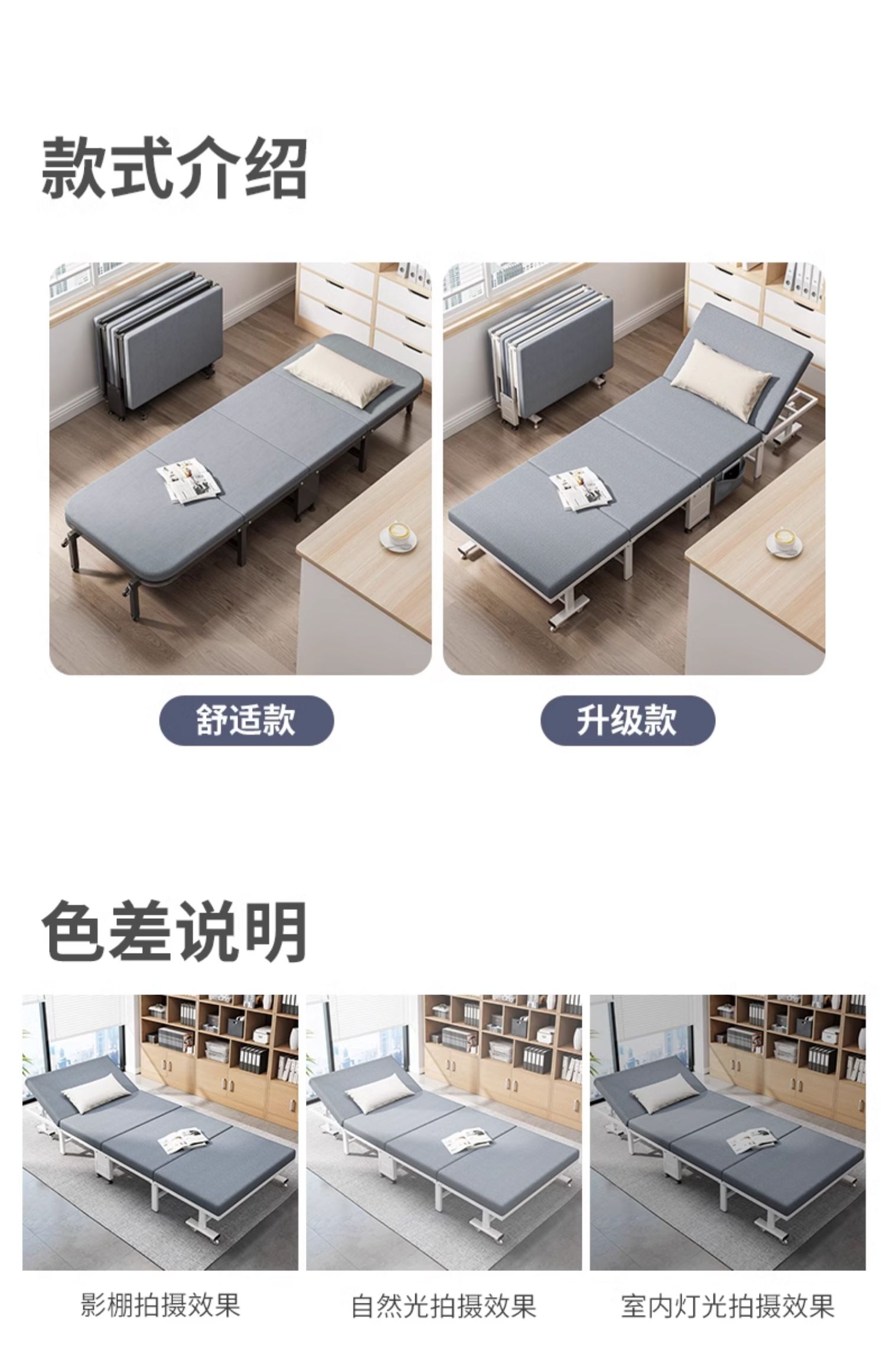 사무실 낮잠 침대 싱글 접이식 침대 점심 시간 병원 동행 야간 소파 침대 이중 목적 안락 의자스토어 가기