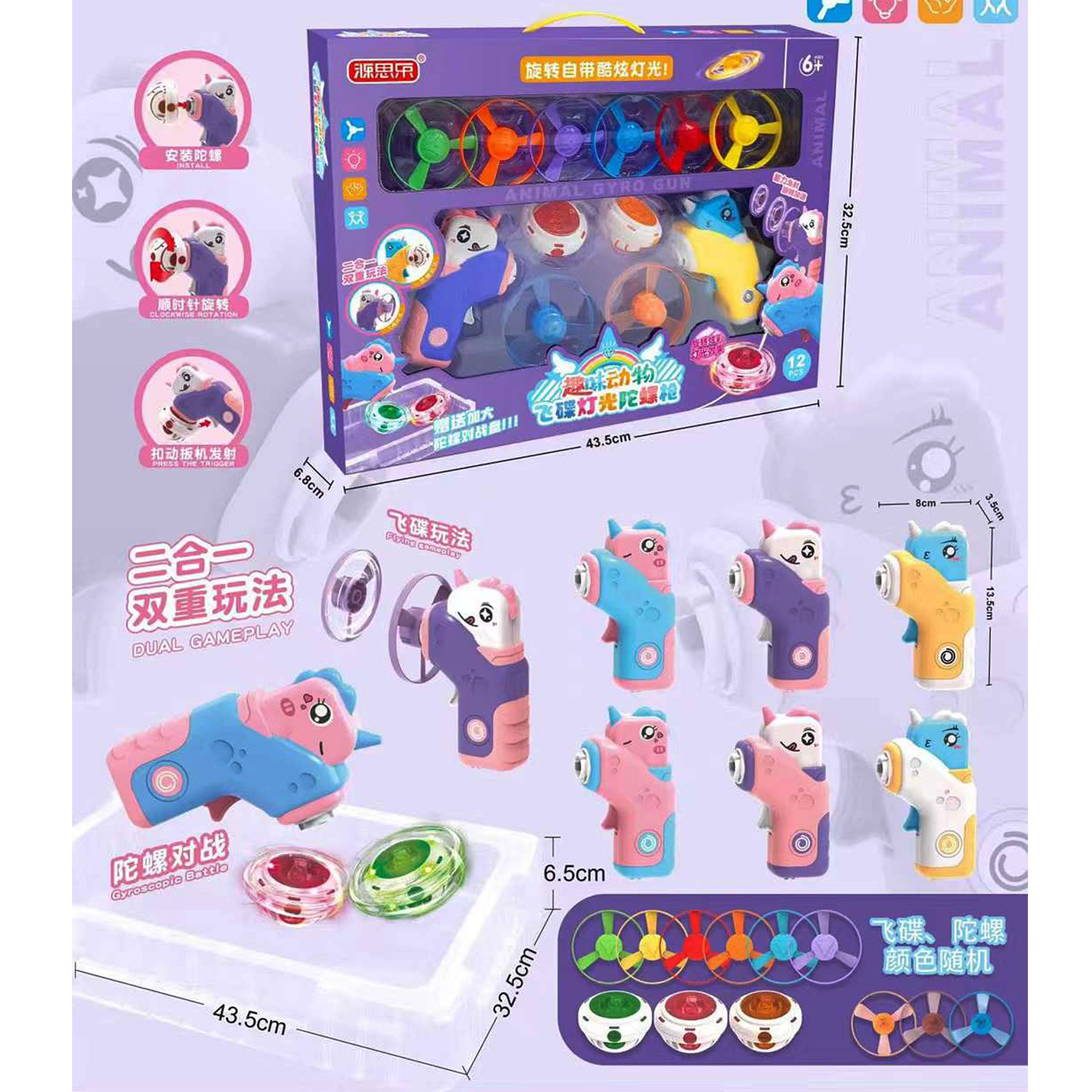 • 재미있는 동물 빛 비행 접시 자이로 총