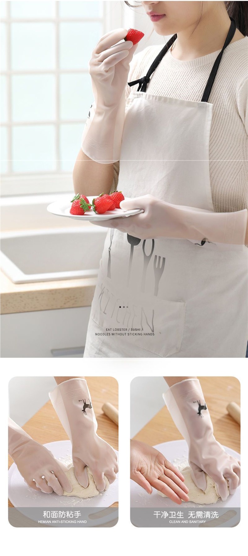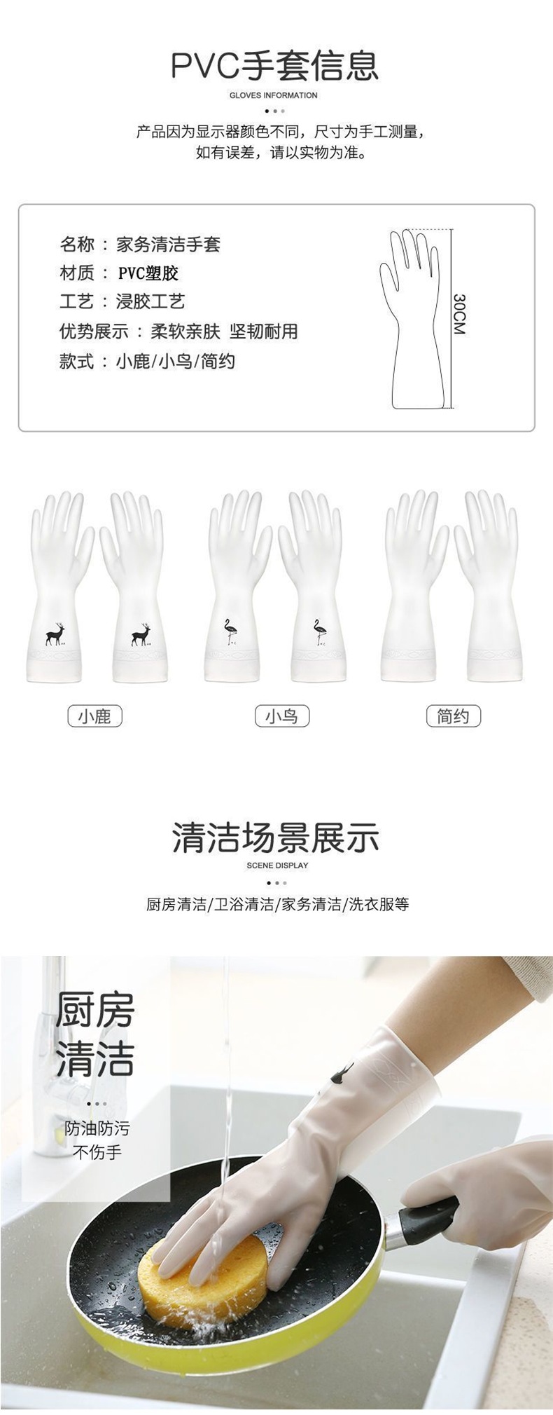 여성용 식기 세척 및 가사용 반투명 PVC 장갑, 방수 및 내구성, 주방, 사계절, 내마모성