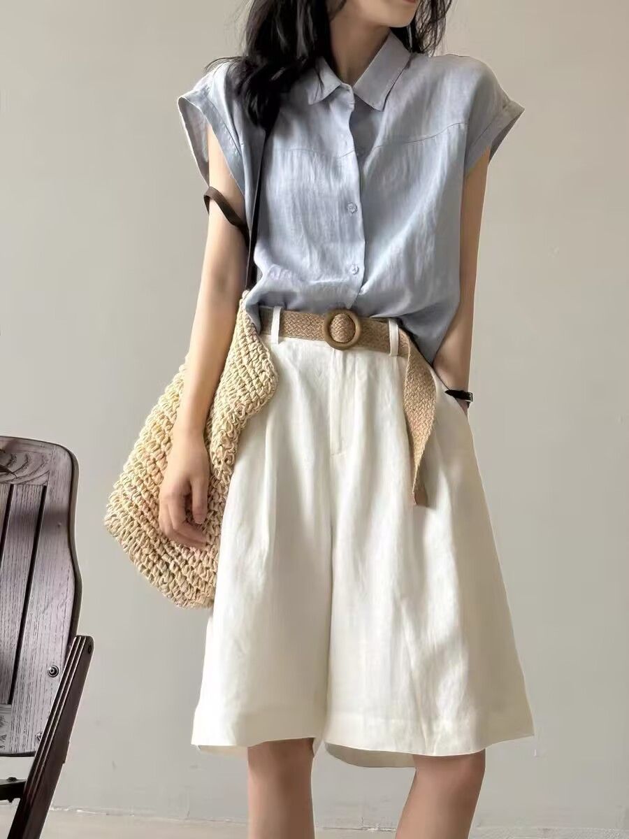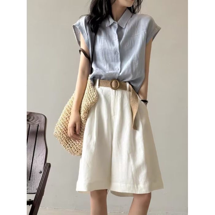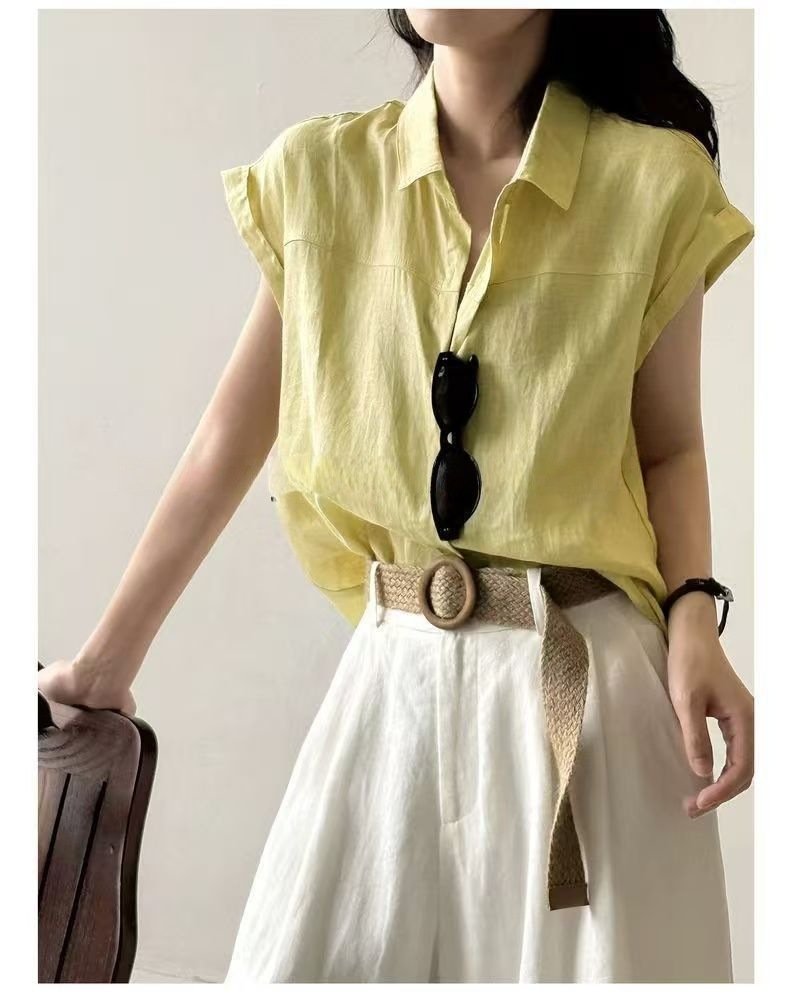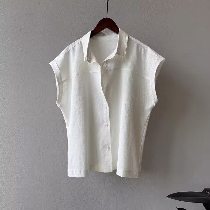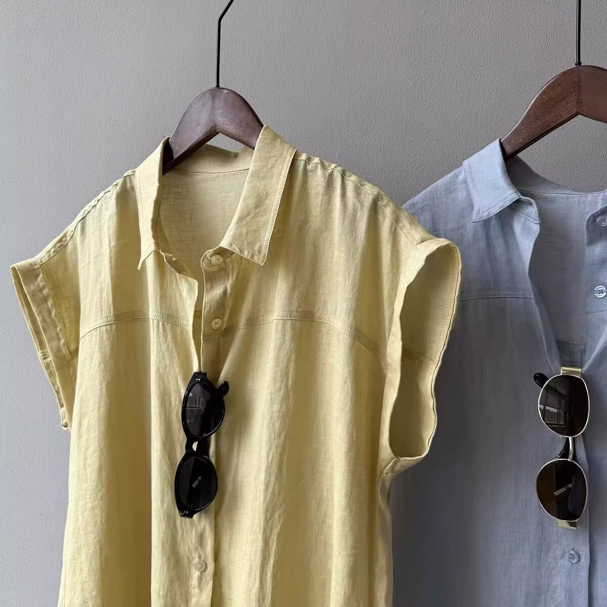 여성용 린넨 하이엔드 반팔 셔츠, 여름 통근복 셔츠, 작은 플라잉 슬리브, 민소매 코튼 린넨 탑, 공장 직판스토어 가기