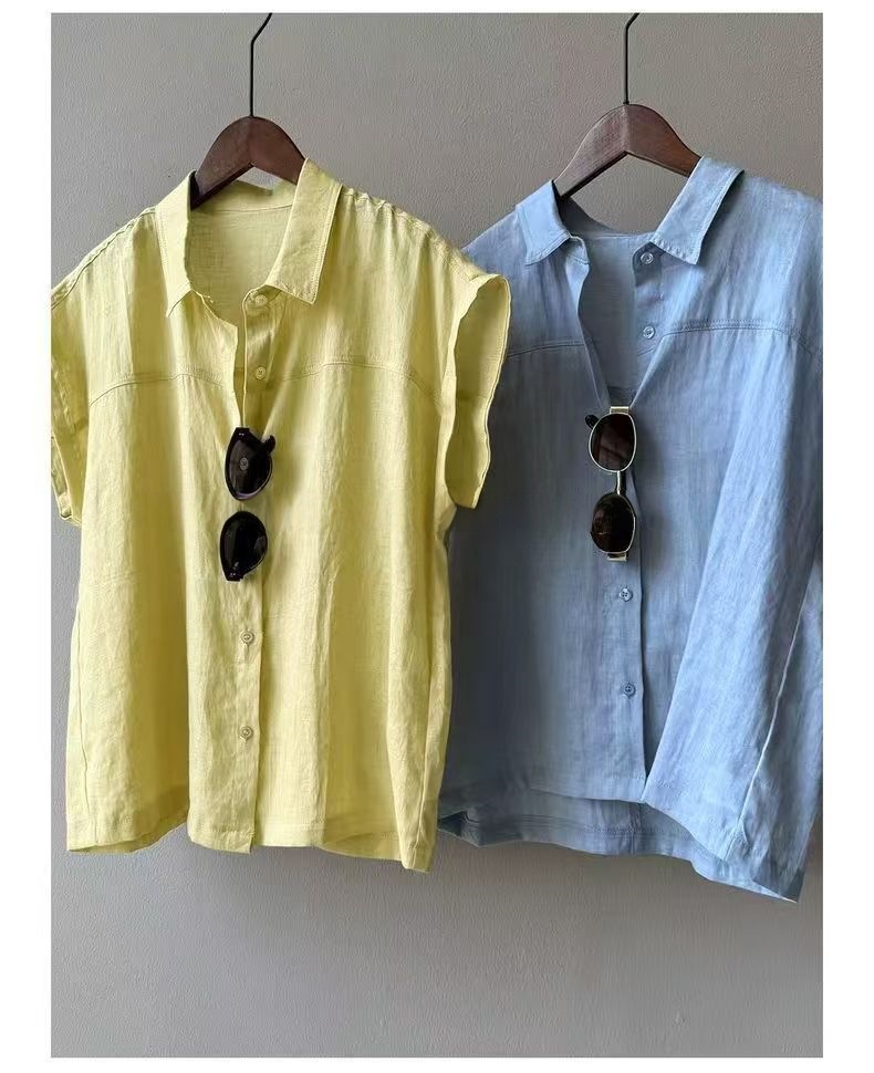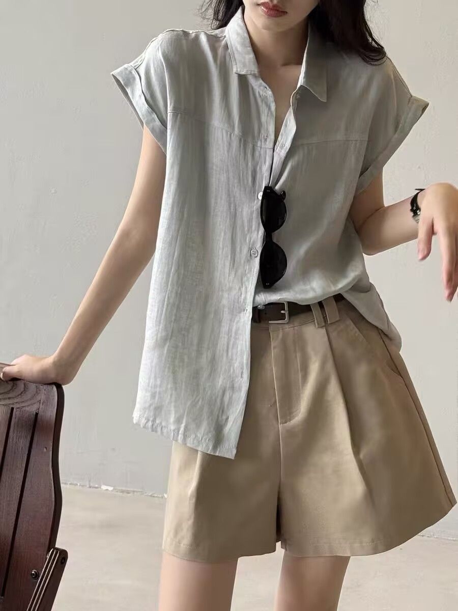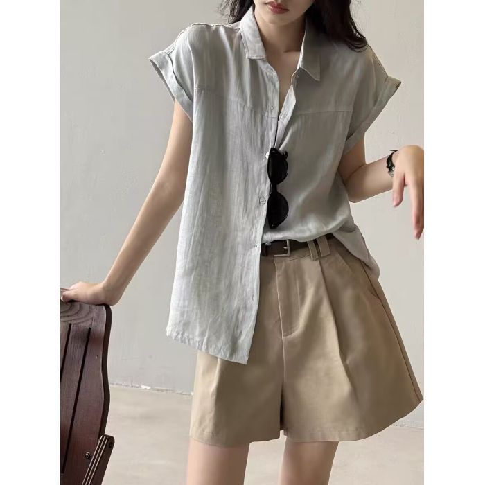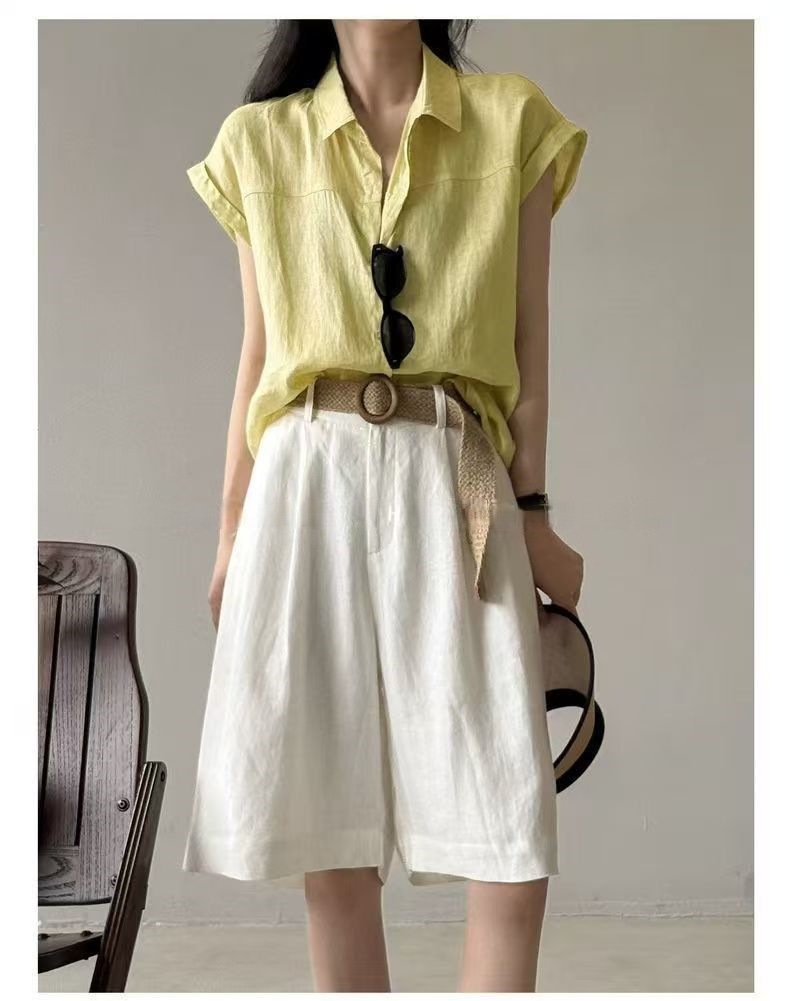 여성용 린넨 하이엔드 반팔 셔츠, 여름 통근복 셔츠, 작은 플라잉 슬리브, 민소매 코튼 린넨 탑, 공장 직판스토어 가기