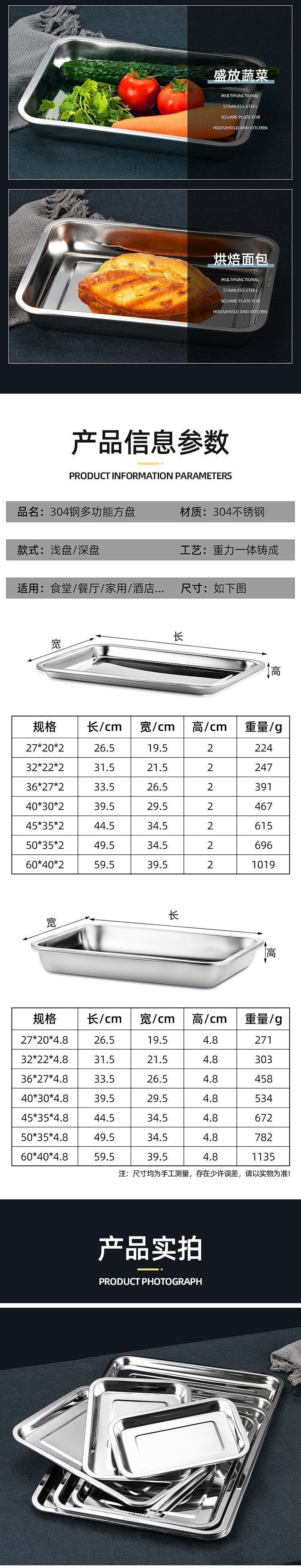 • 매우 두껍고 깊은 접시: 60X40X4.8 찜통 트레이