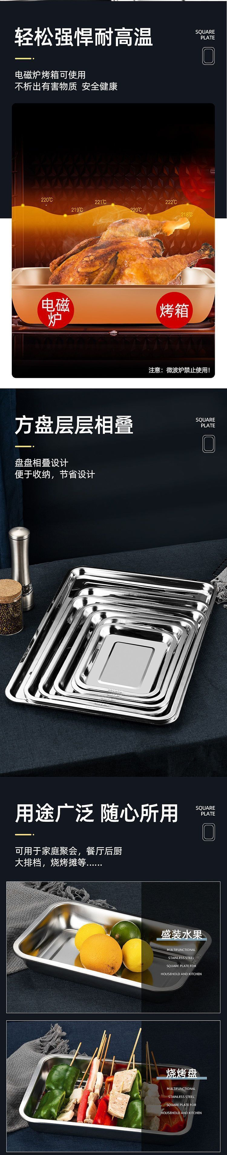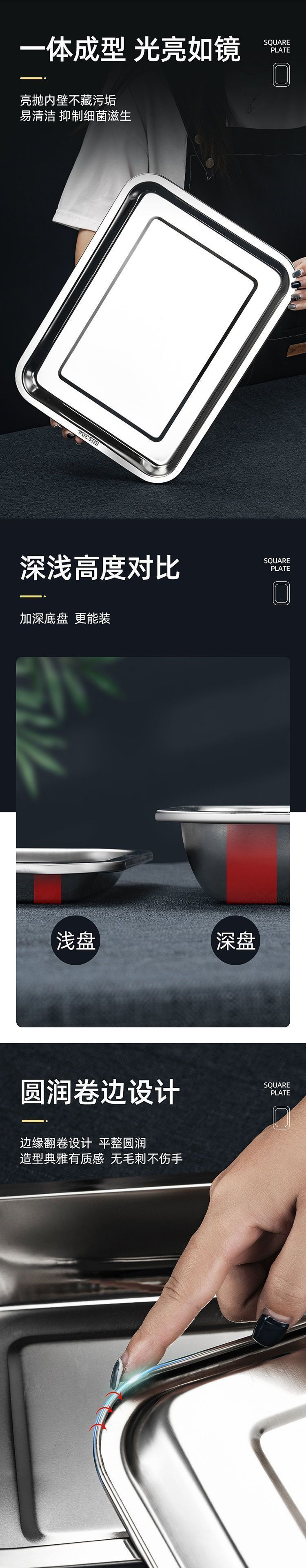 304 스테인레스 스틸 사각 접시 직사각형 접시 바베큐 접시 캔틴 접시 구운 생선 접시 찐 밥 접시 만두 접시 트레이
