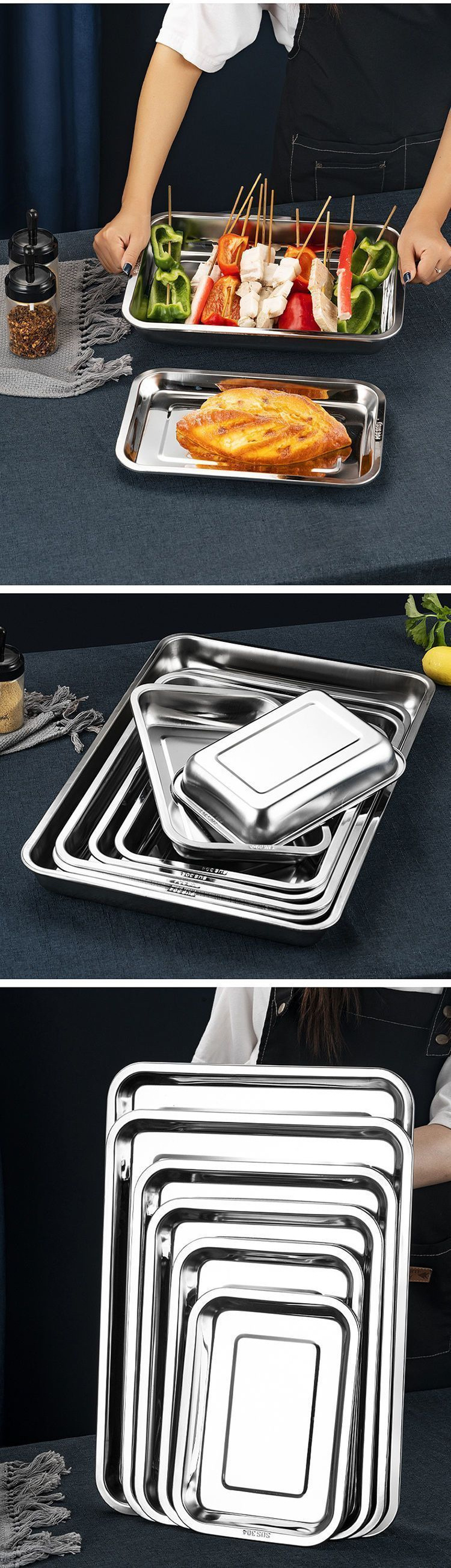 304 스테인레스 스틸 사각 접시 직사각형 접시 바베큐 접시 캔틴 접시 구운 생선 접시 찐 밥 접시 만두 접시 트레이스토어 가기