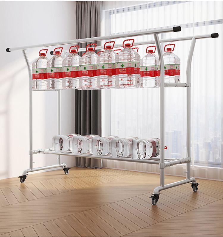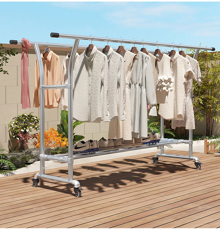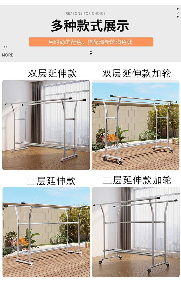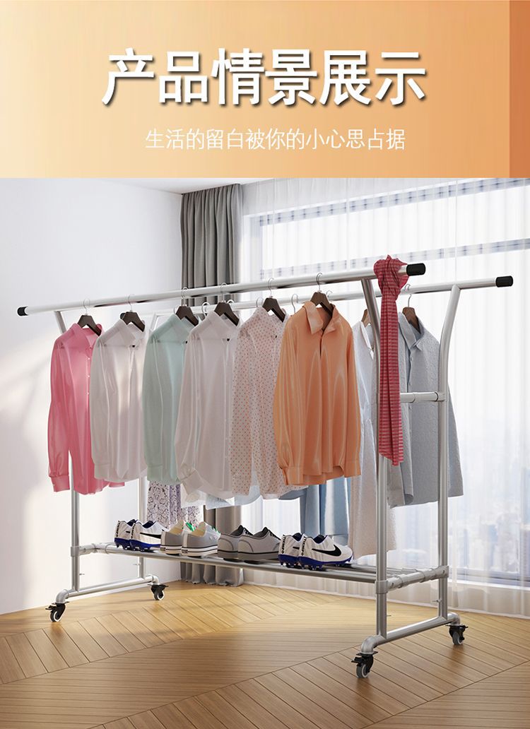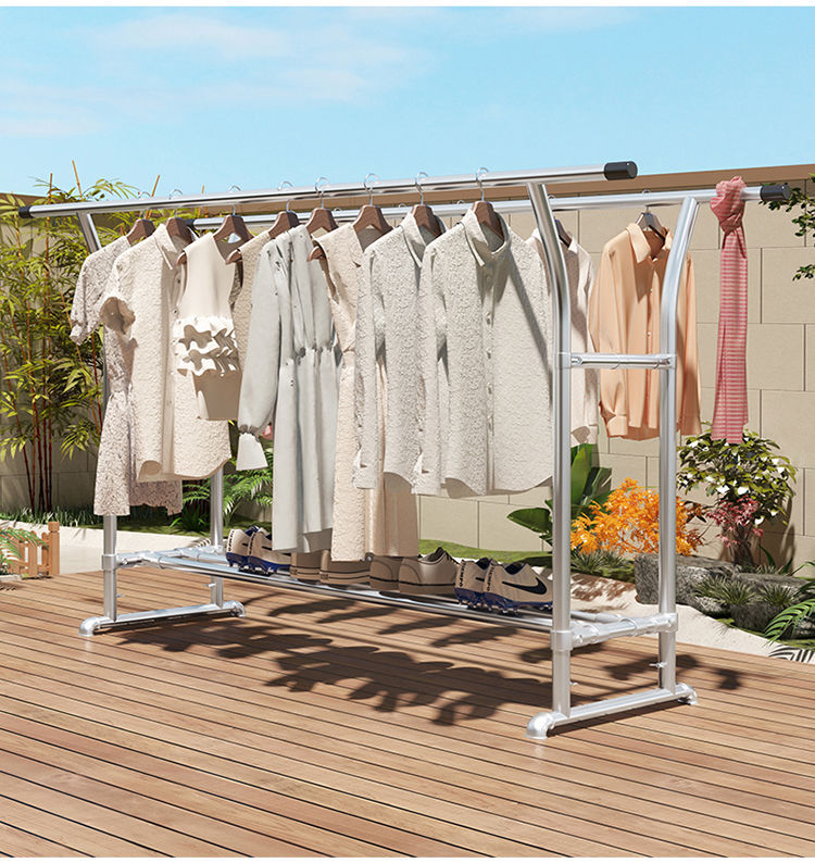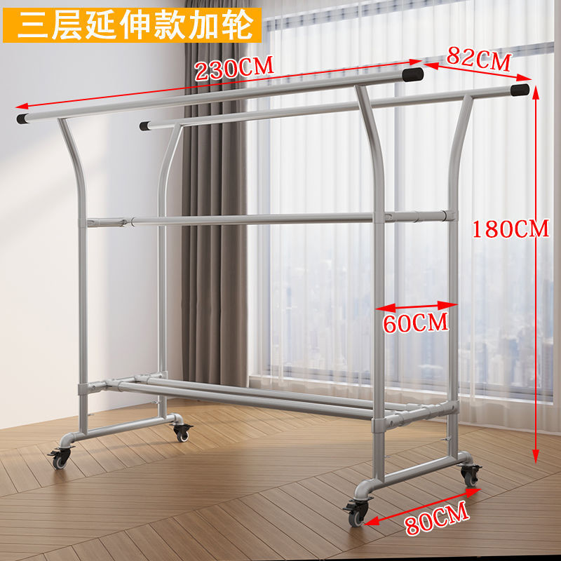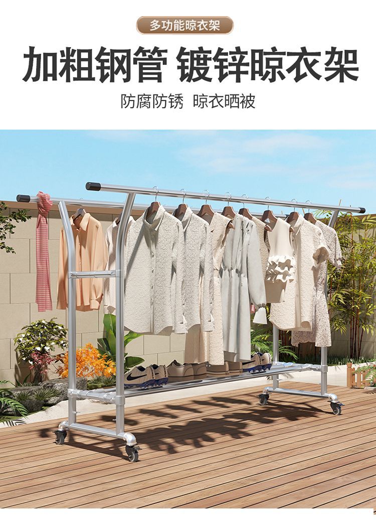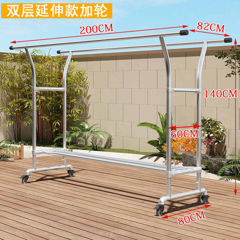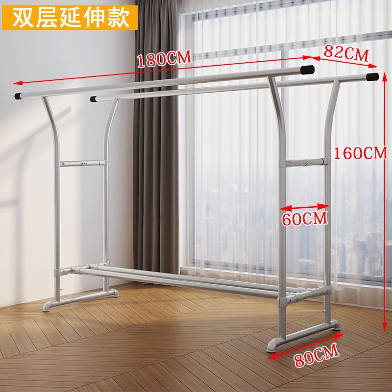 아연 도금 강관 옷걸이 랙 바닥에서 천장까지 야외 야외 가정용 간단한 이중 막대 수도관 옷 걸이 및 이불 랙 냉각 막대스토어 가기