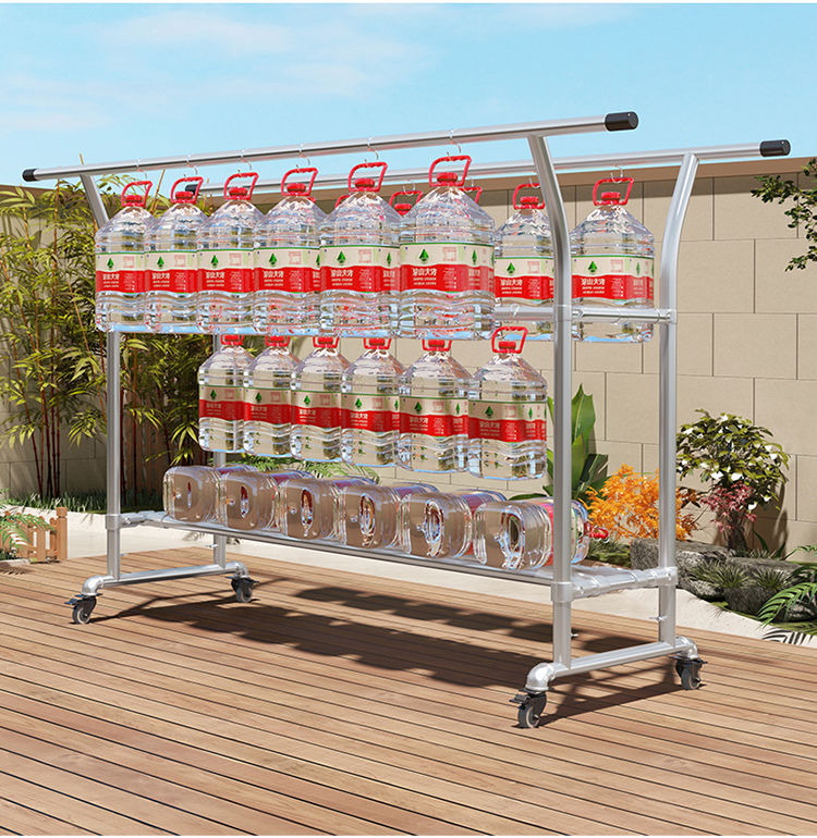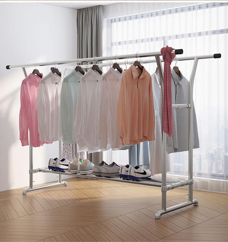 아연 도금 강관 옷걸이 랙 바닥에서 천장까지 야외 야외 가정용 간단한 이중 막대 수도관 옷 걸이 및 이불 랙 냉각 막대