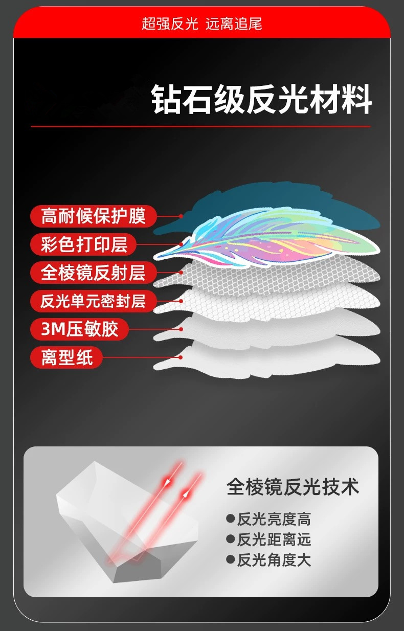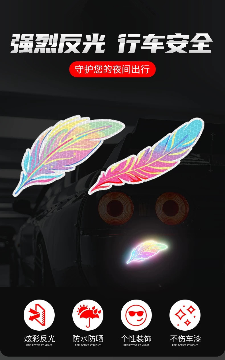 다이아몬드 등급 반사 스티커, 판타지 깃털 자동차 범퍼 스크래치 차단 전기 자동차 오토바이 야간 경고 스티커