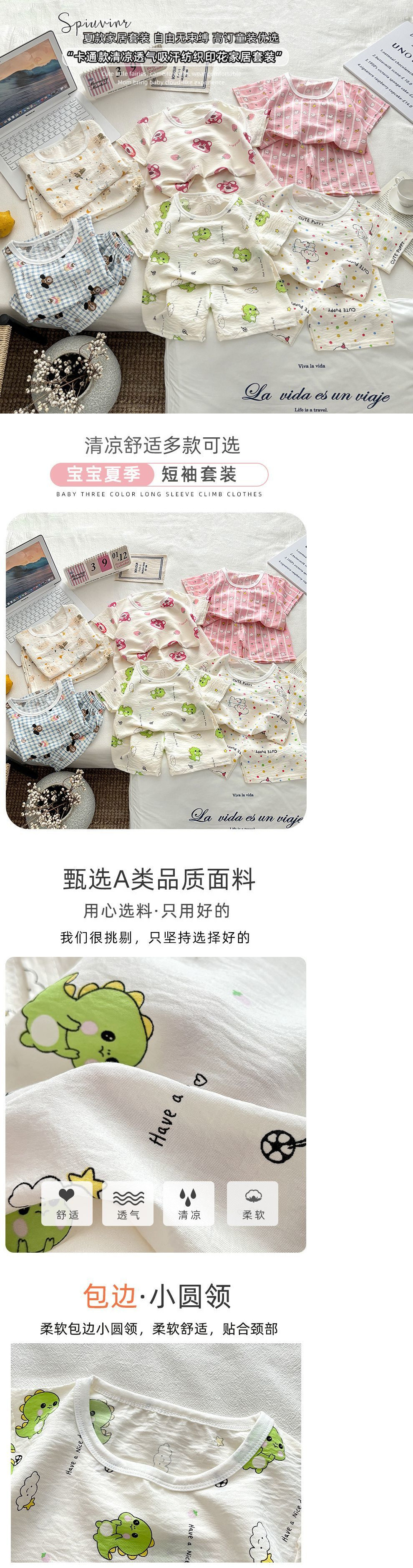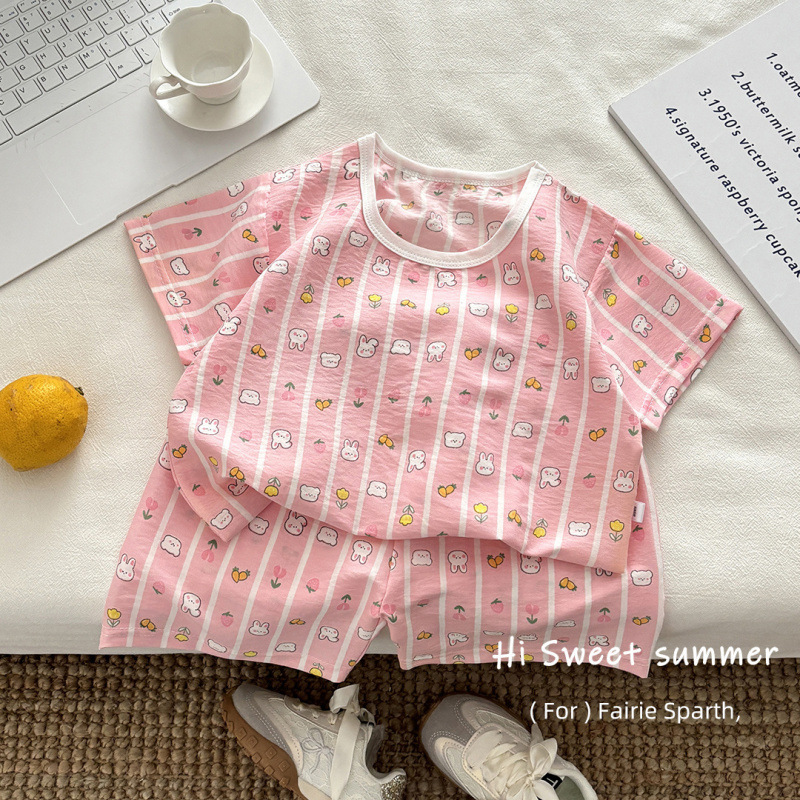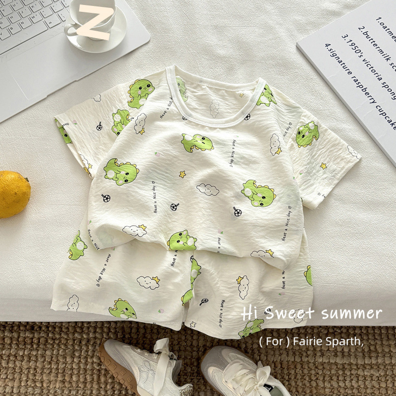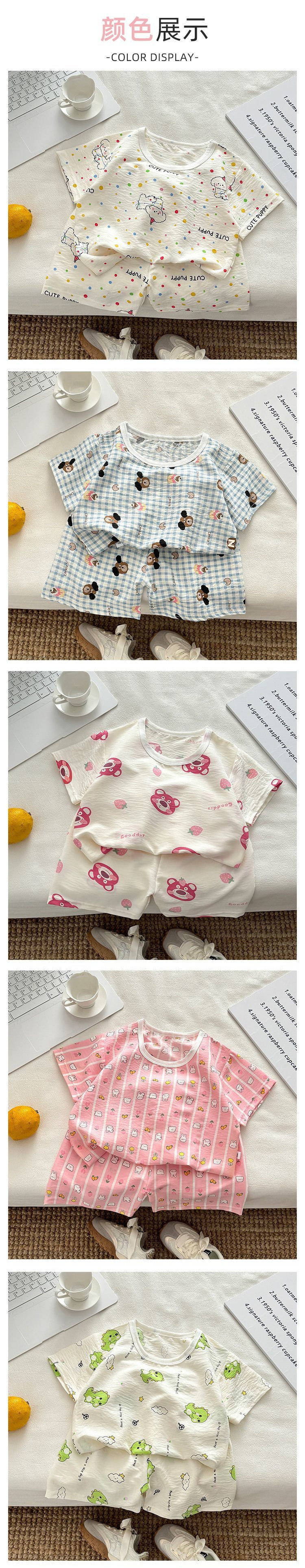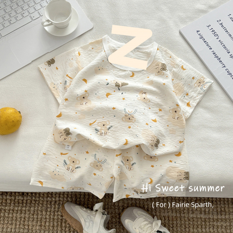 아기 남성과 여성의 구름 면화 반팔 새 슈트 어린이 여름 반바지 에어컨 가정 의류 소녀 얇은 잠옷스토어 가기