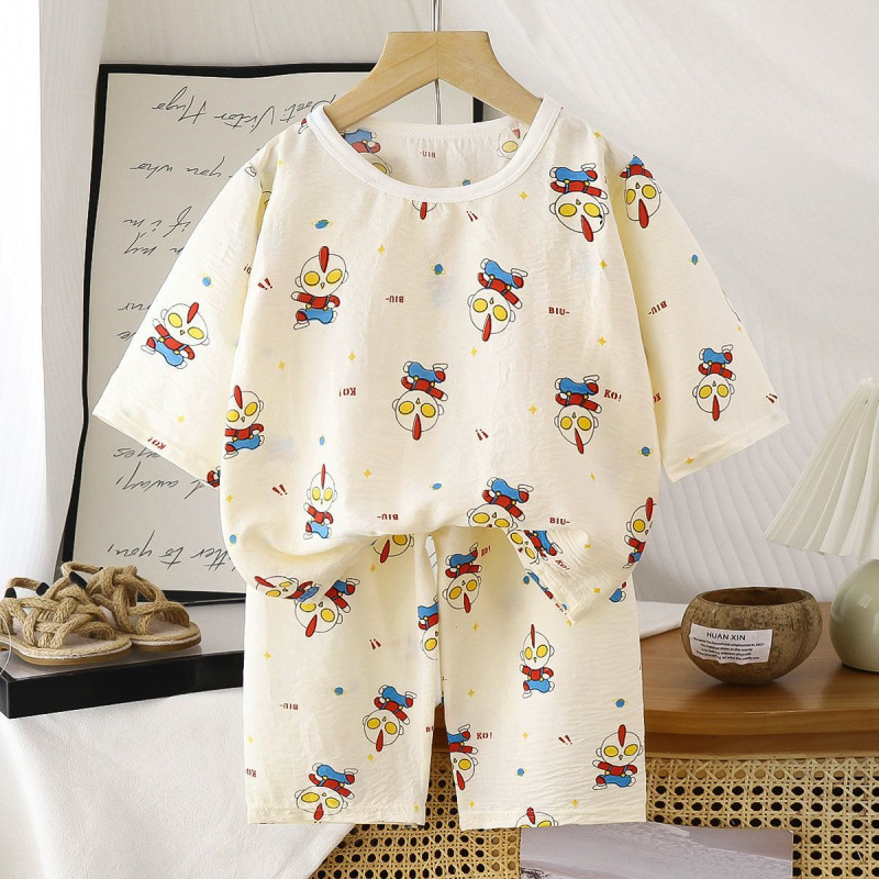 아기 남성과 여성의 구름 면화 반팔 새 슈트 어린이 여름 반바지 에어컨 가정 의류 소녀 얇은 잠옷
