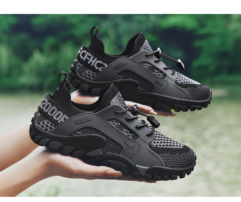 남녀공용 플라이 니트 스트리킹 슈즈, 아웃도어 캠핑 등산화, 통기성 메쉬 소재, 대형 사이즈, 해변 및 워터 트레킹화, 미끄럼 방지스토어 가기