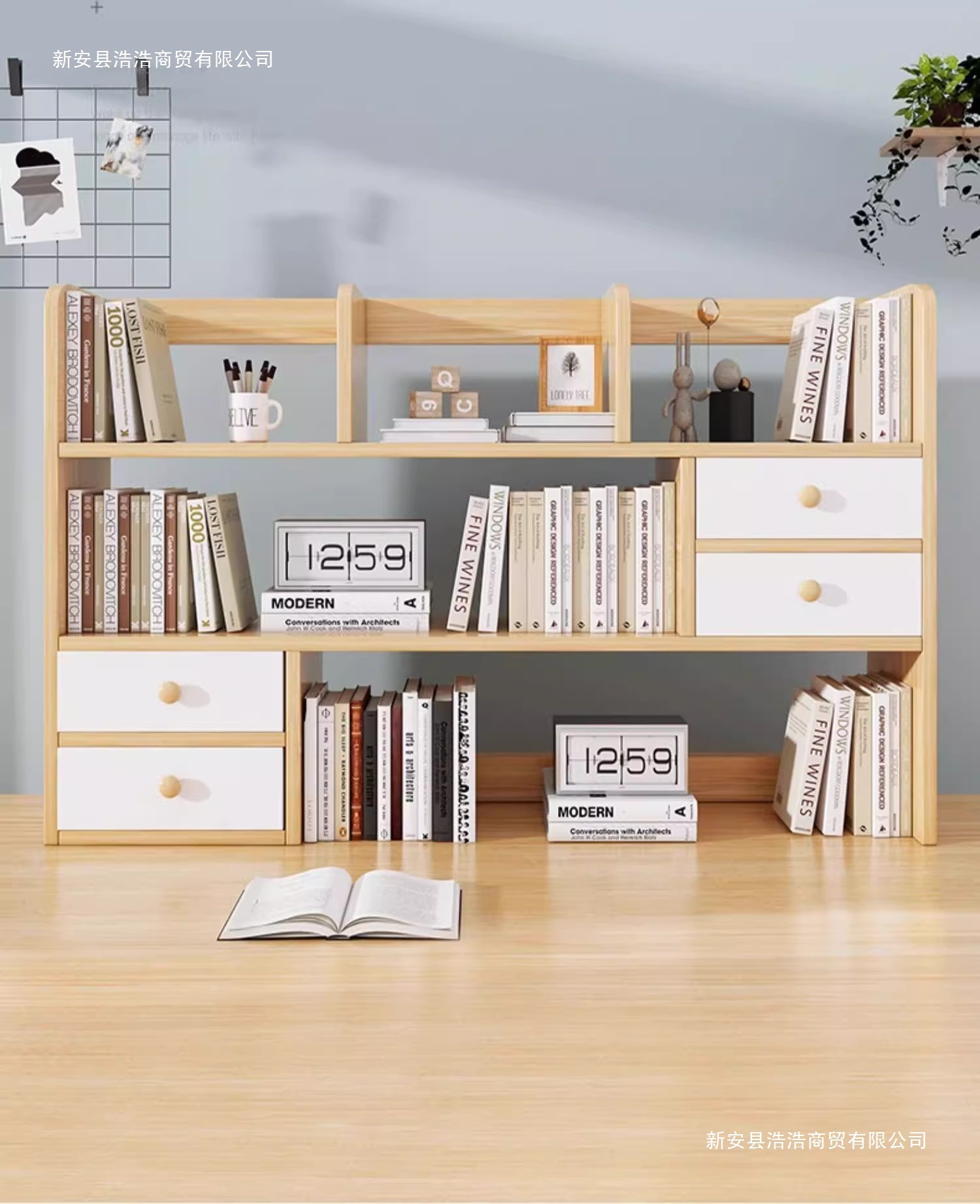 • [복층 단일 캐비닛 도어] 전원 참나무 색상 + 따뜻한 흰색 캐비닛 도어 80/16/43cm
