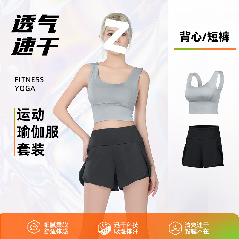 플러스 사이즈 러닝 피트니스 슈트 여성용 아침 요가 슈트 실내 피트니스 에어로빅 슈트 속건 조끼 스포츠 Lanqi스토어 가기