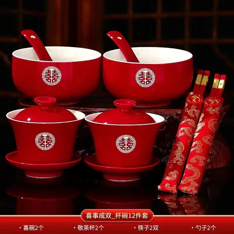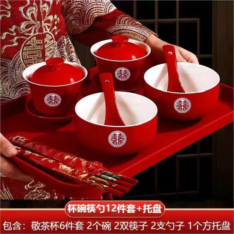 차잔, 웨딩볼, 결혼식, 빨간뚜껑그릇, 차세트, 그릇과 젓가락 세트, 결혼식 용품