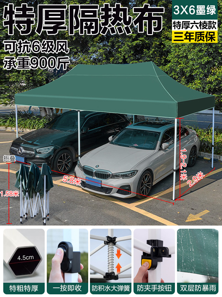 • 두꺼운 자동 랙 3*4.5+3 측면 천 짙은 녹색 주차장