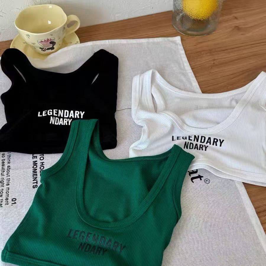 여자 여름 조끼 2025 한국 어린이 달콤한 댄스 편지 슬림 짧은 백리스 캐미솔 탑스토어 가기