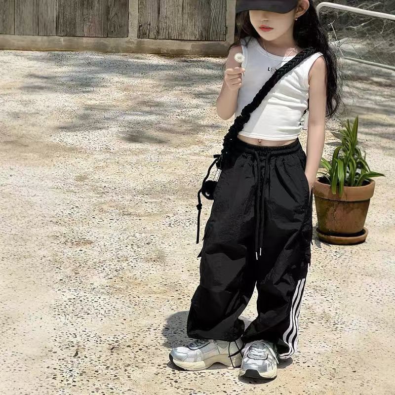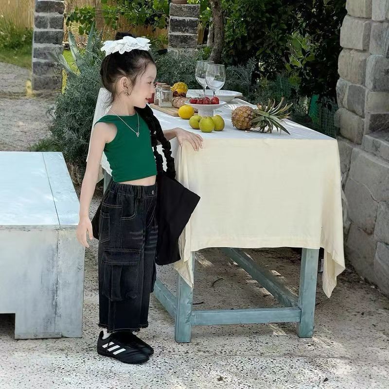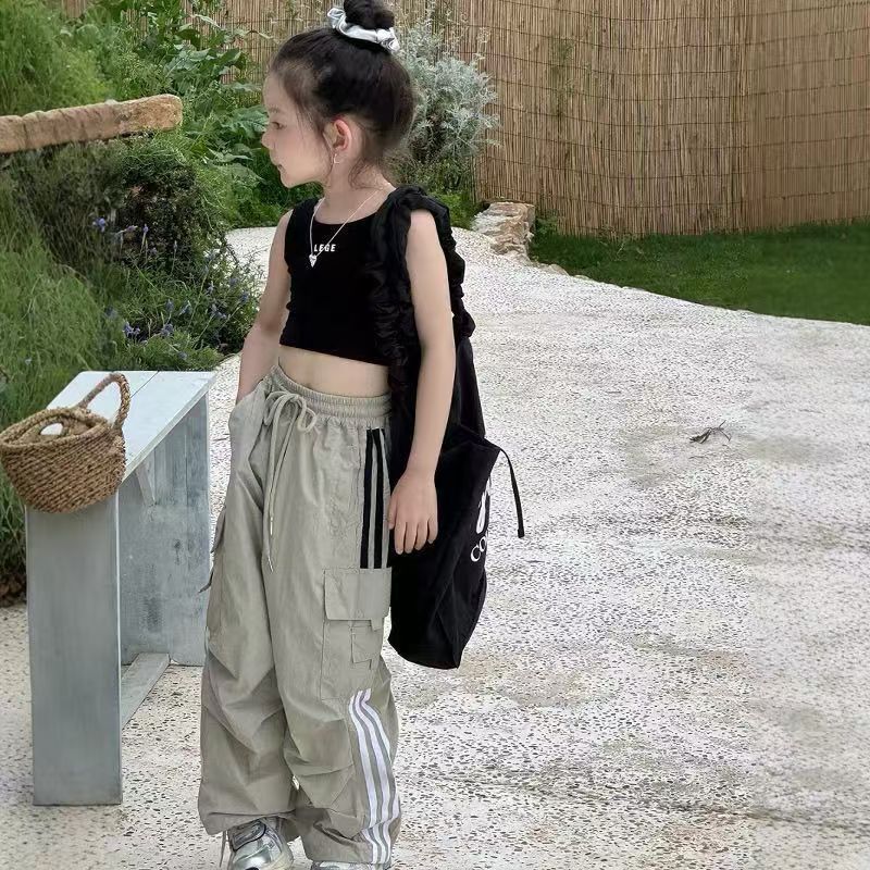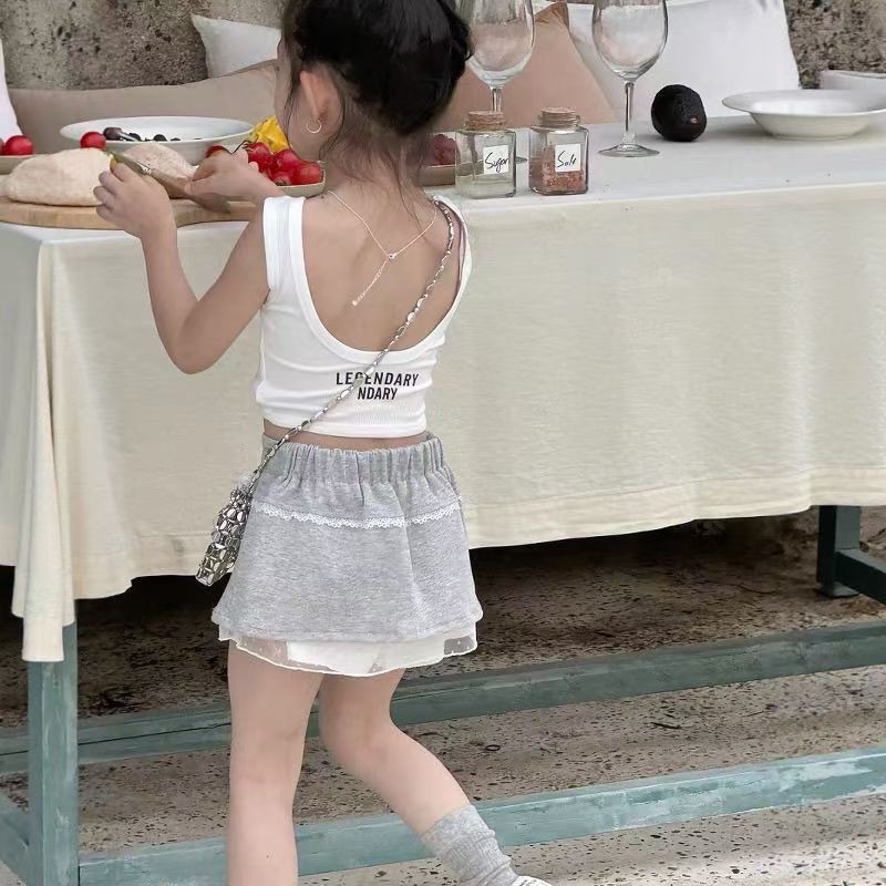 여자 여름 조끼 2025 한국 어린이 달콤한 댄스 편지 슬림 짧은 백리스 캐미솔 탑