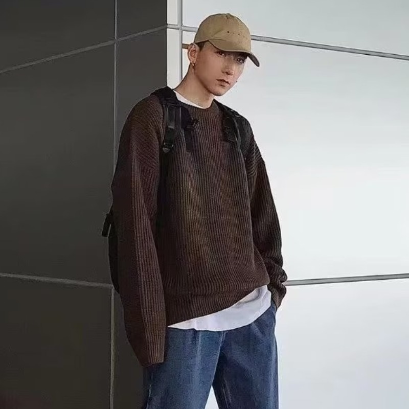 가을 겨울 남성용 공장 직접 판매 라운드 넥 솔리드 컬러 스웨터 느슨한 한국 스타일 두꺼운 스웨터 맞춤형 기본 스웨터 탑