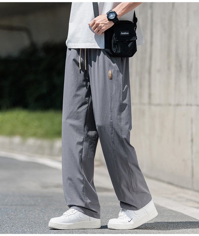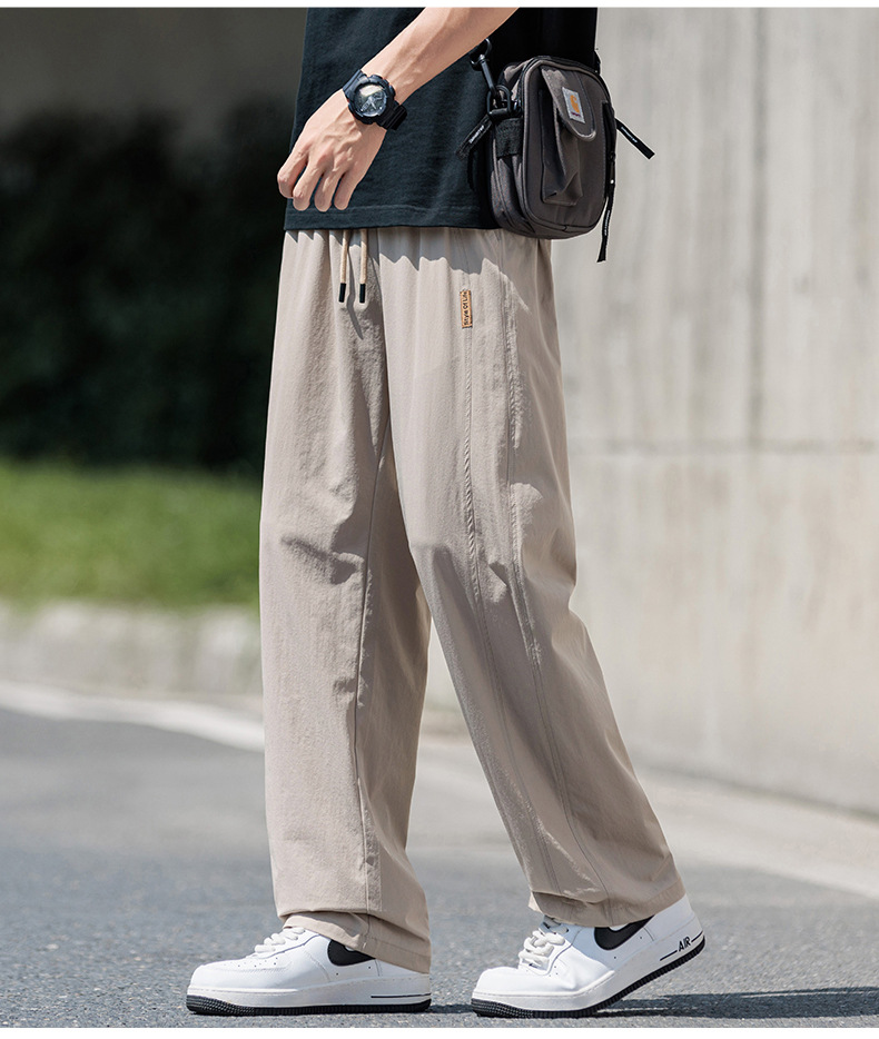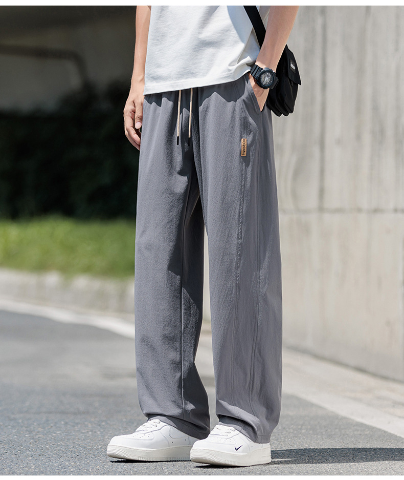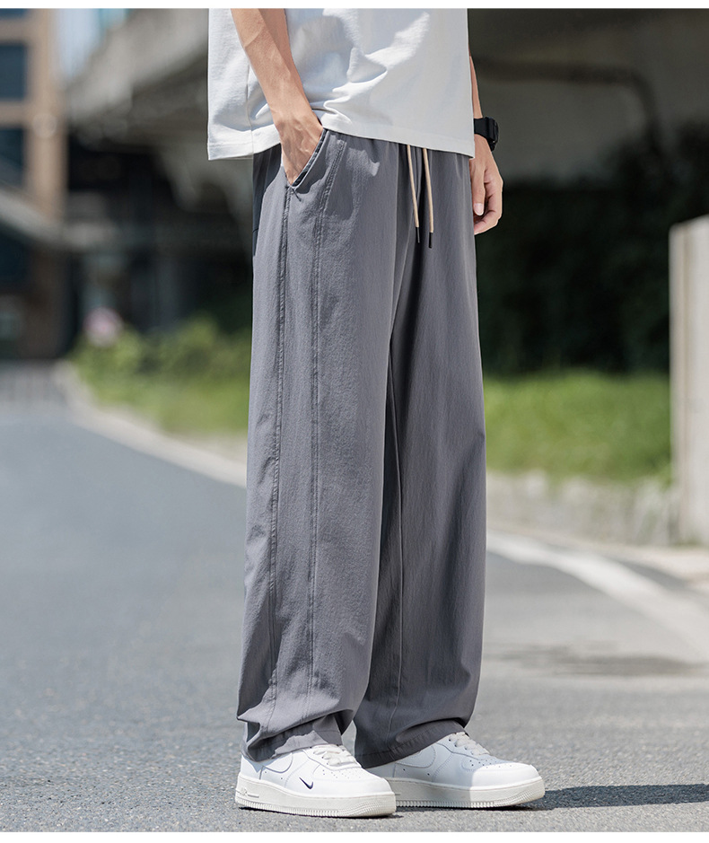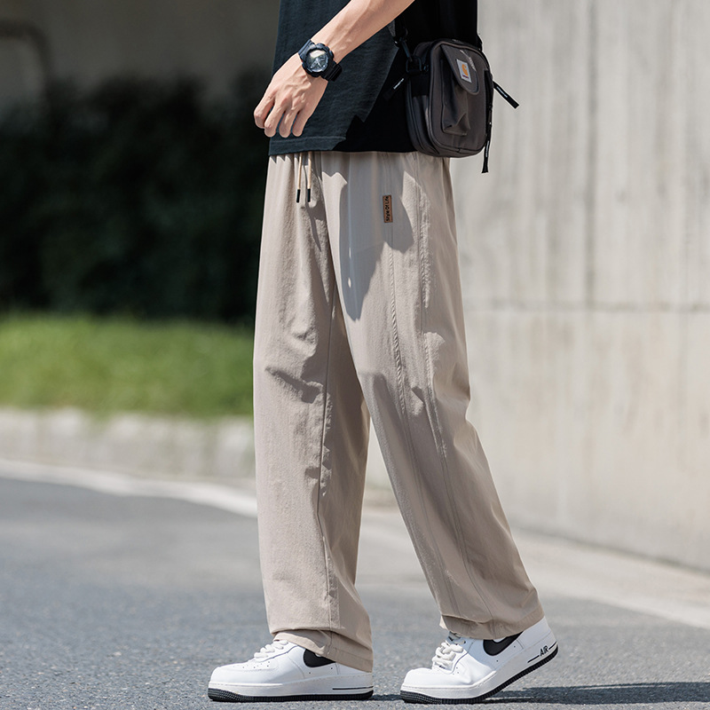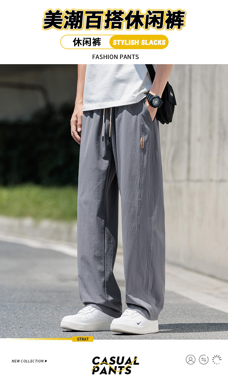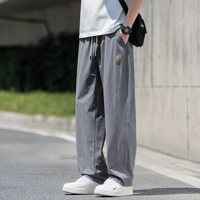 도매 새로운 캐주얼 바지 남성 여름 통기성 얼음 실크 속건 스포츠 바지 미국 유행 브랜드 느슨한 스트레이트 바지