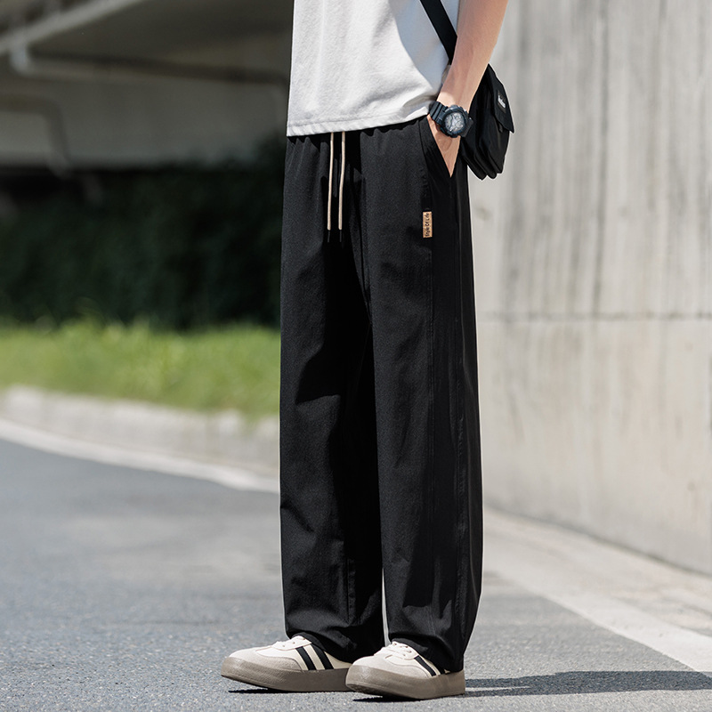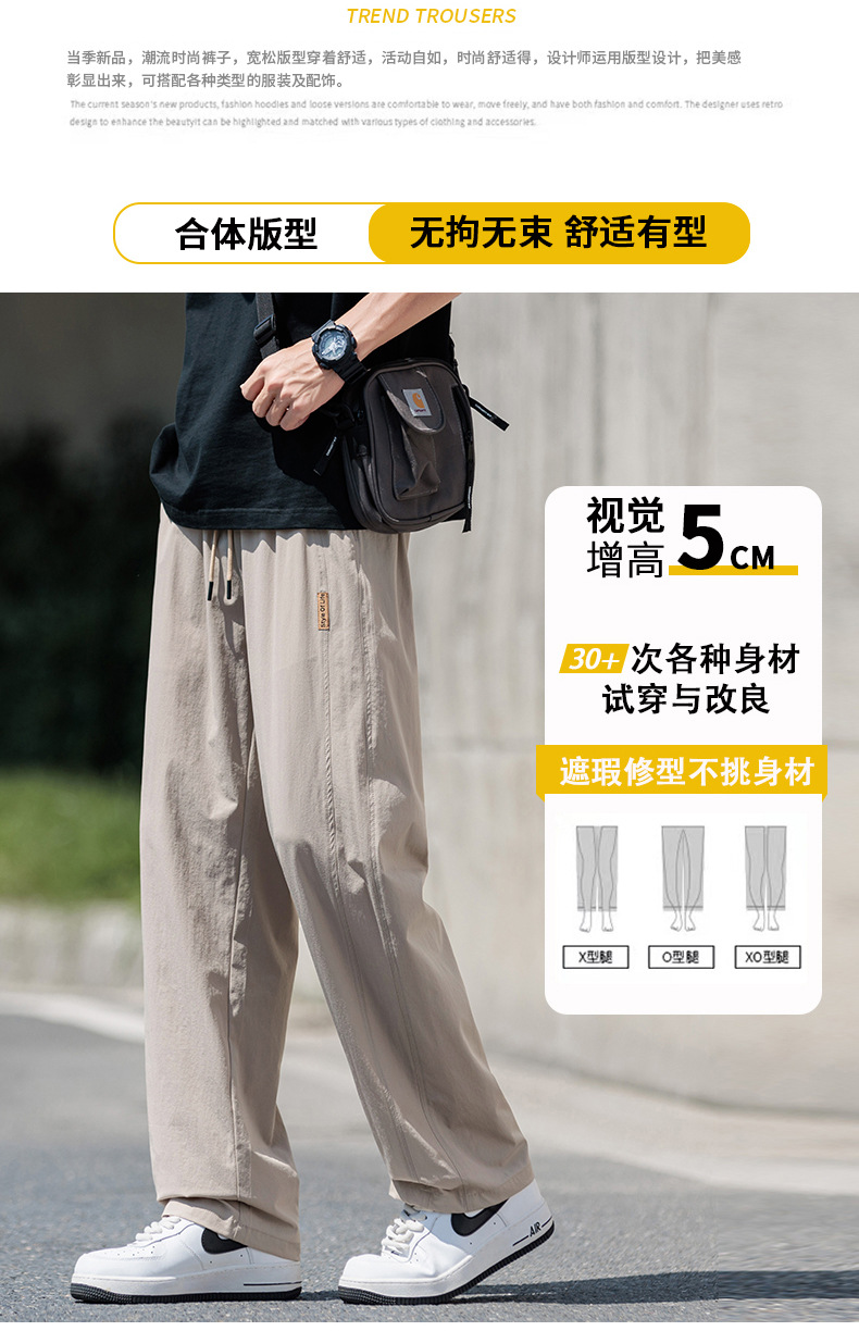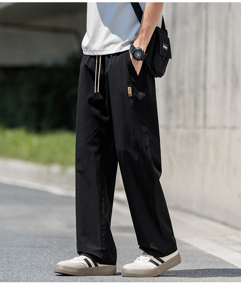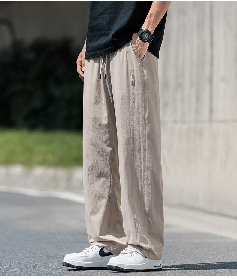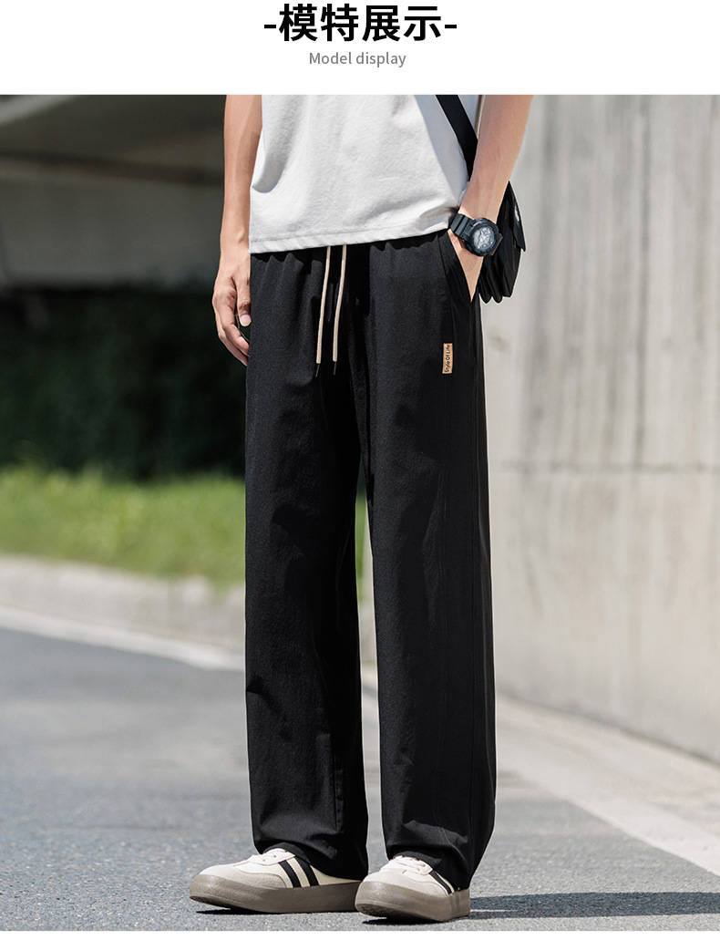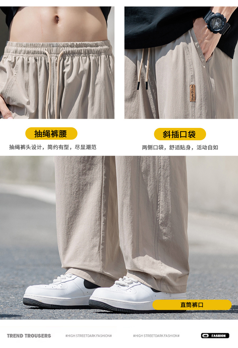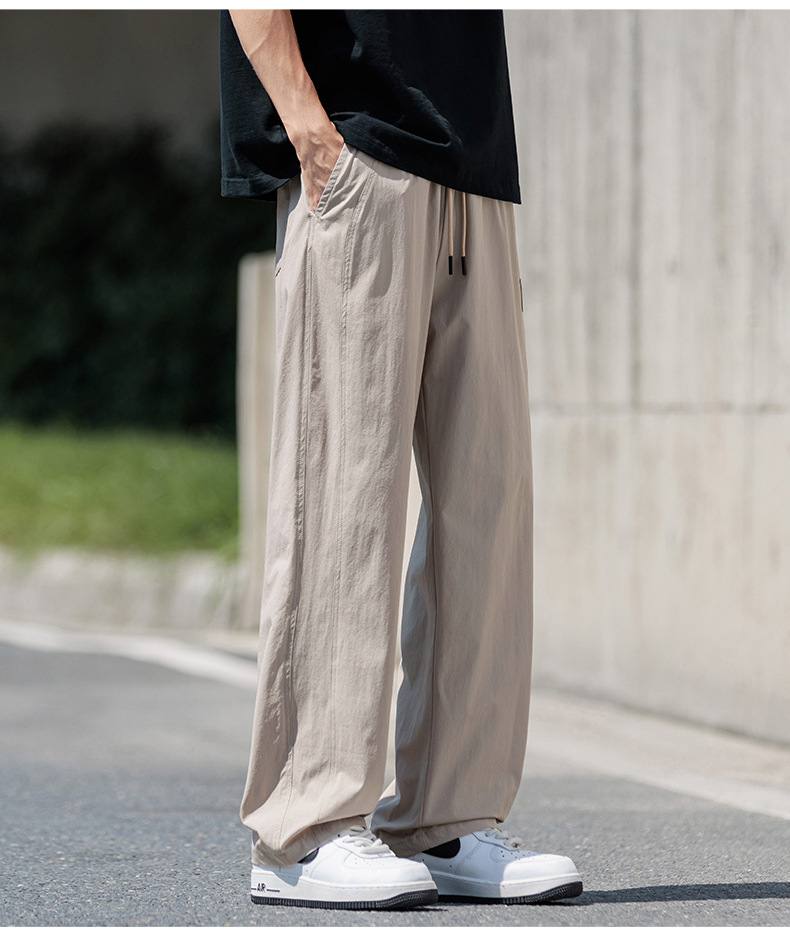 도매 새로운 캐주얼 바지 남성 여름 통기성 얼음 실크 속건 스포츠 바지 미국 유행 브랜드 느슨한 스트레이트 바지