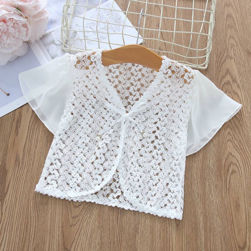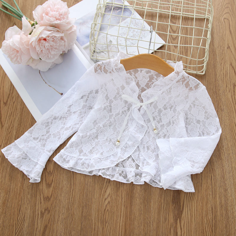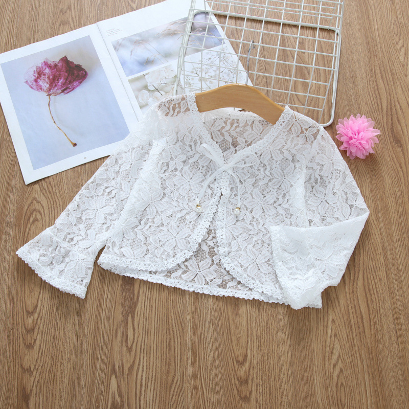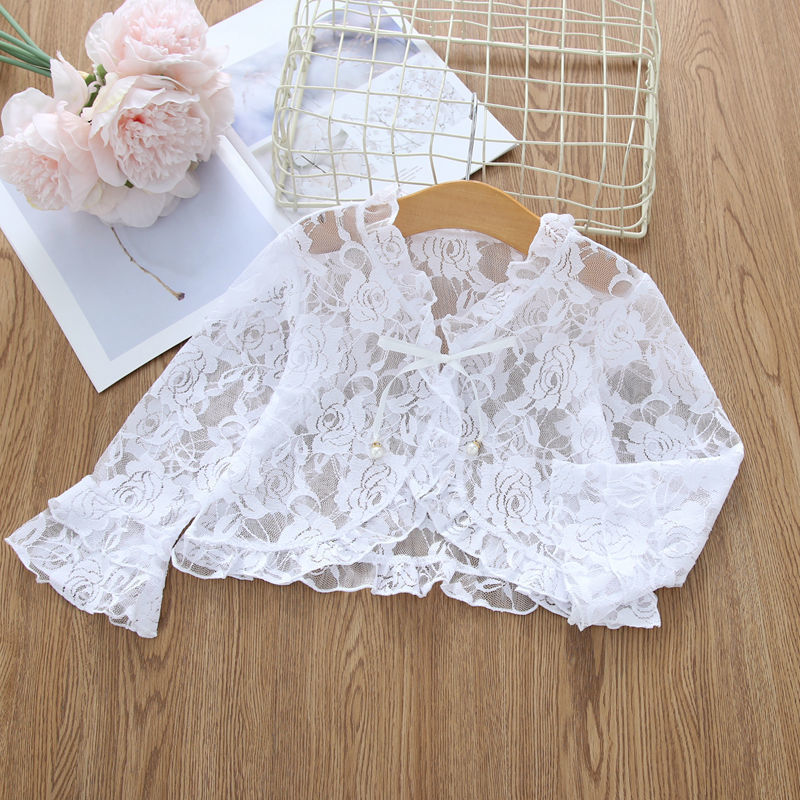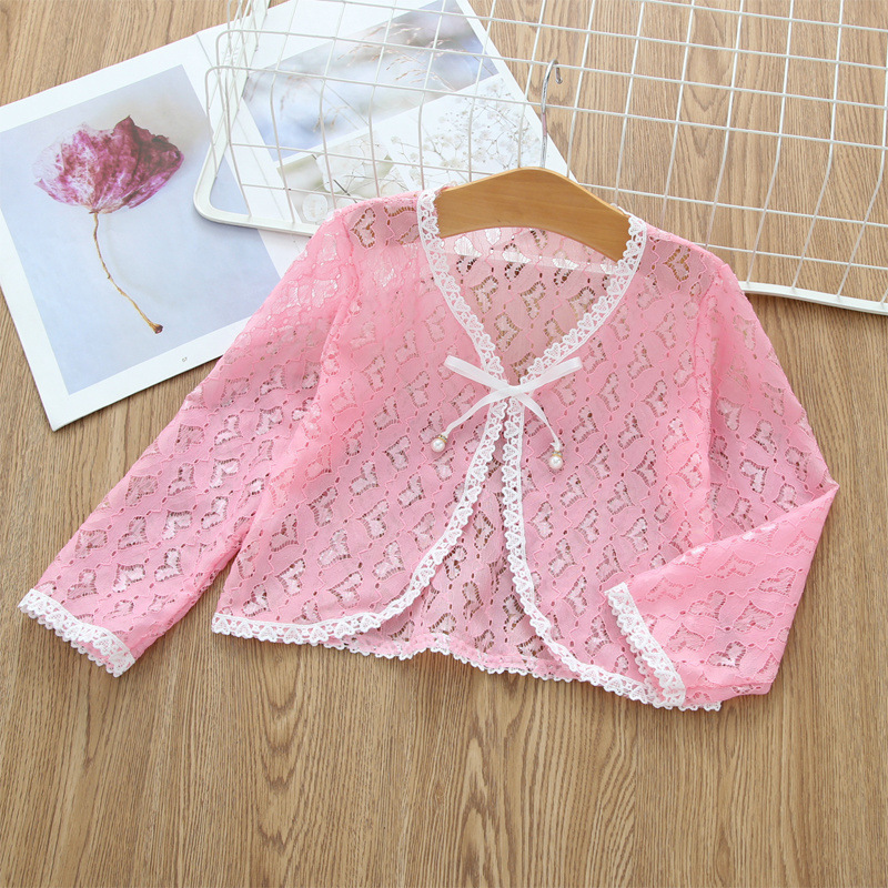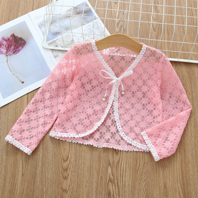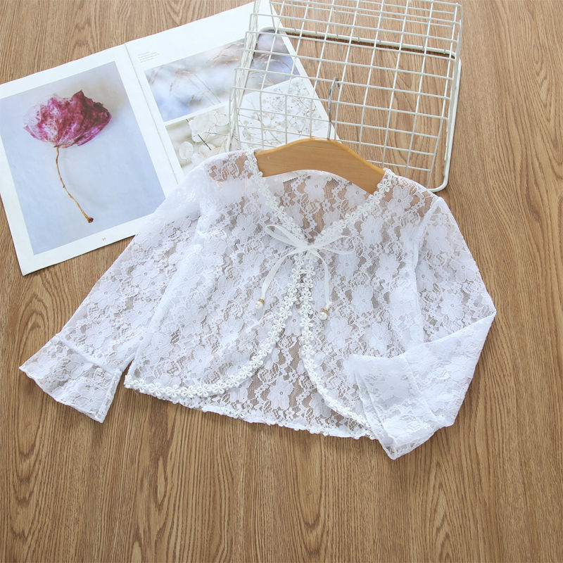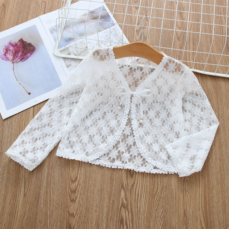 아동용 코트 가디건, 여아용 레이스 중공 아우터, 숄, 소형 조끼, 여아용 긴팔 가디건, 에어컨 셔츠스토어 가기